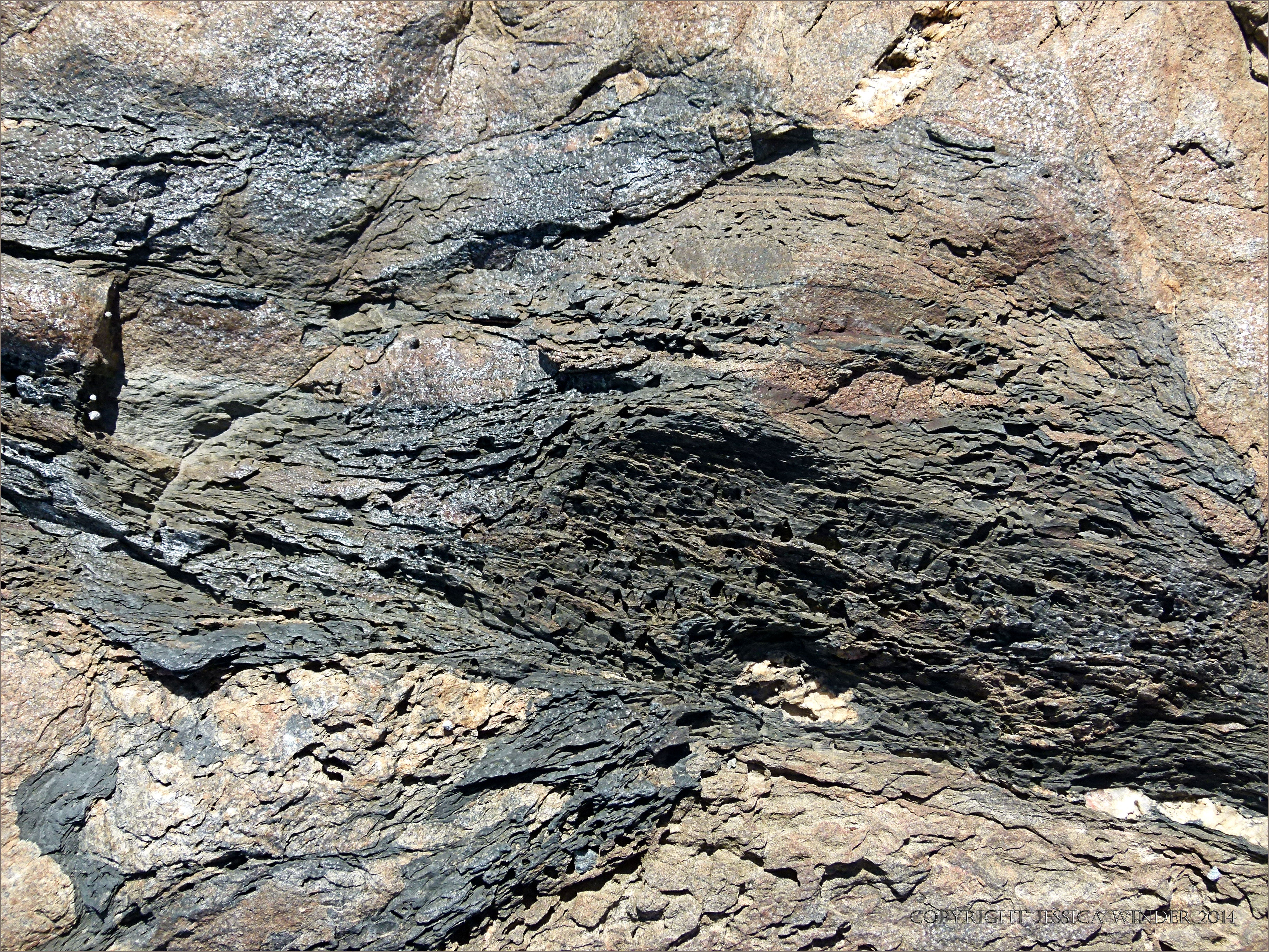 Port Douglas Rocks 27 – Close-up of a band of black vesicular rock in an outcrop near Four Mile Beach in Port Douglas, Queensland, Australia.