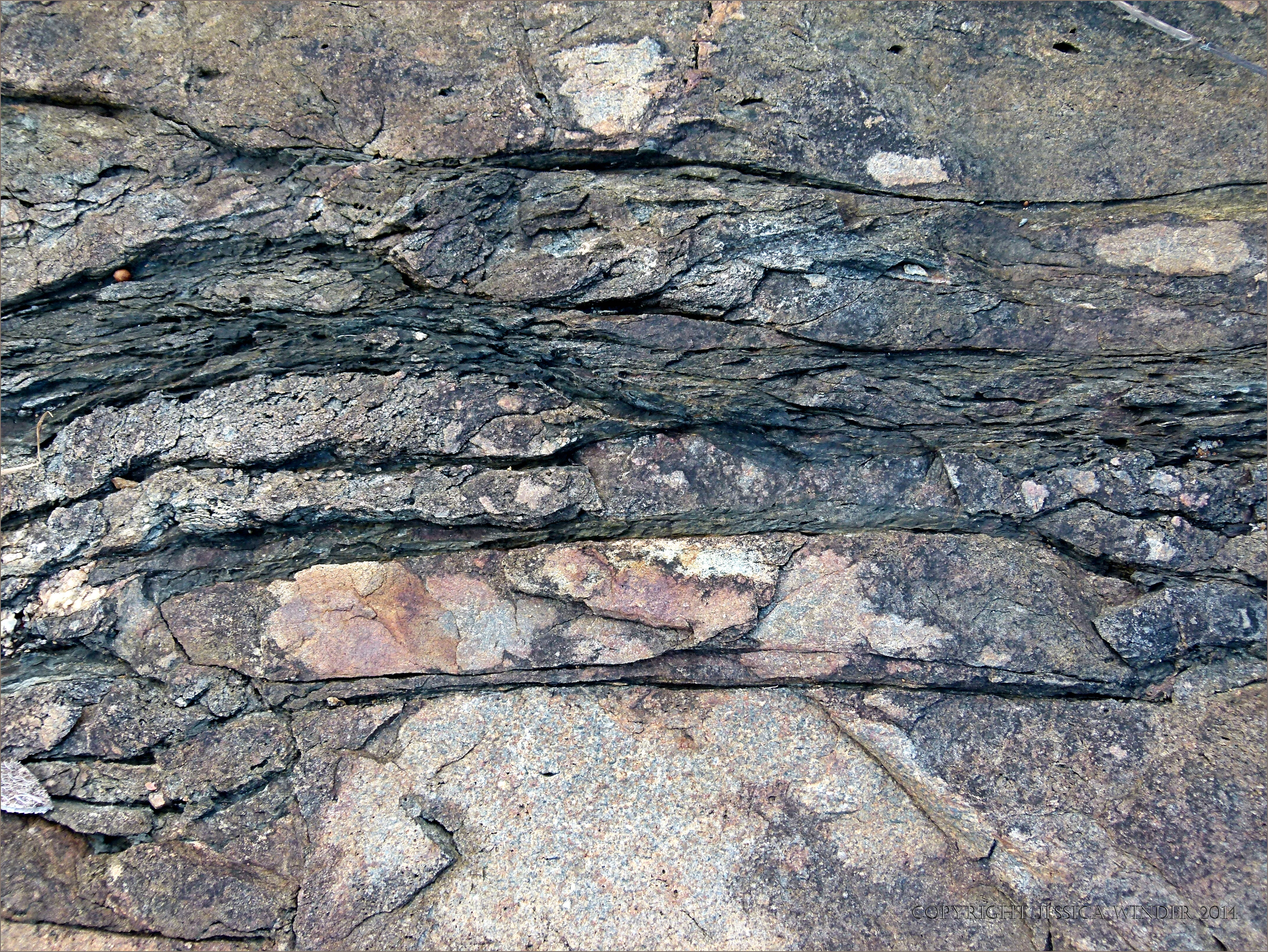 Port Douglas Rocks 39 – Colour and texture, possibly showing evidence of volcanic activity, in a rock outcrop near Four Mile Beach in Port Douglas, Queensland, Australia.