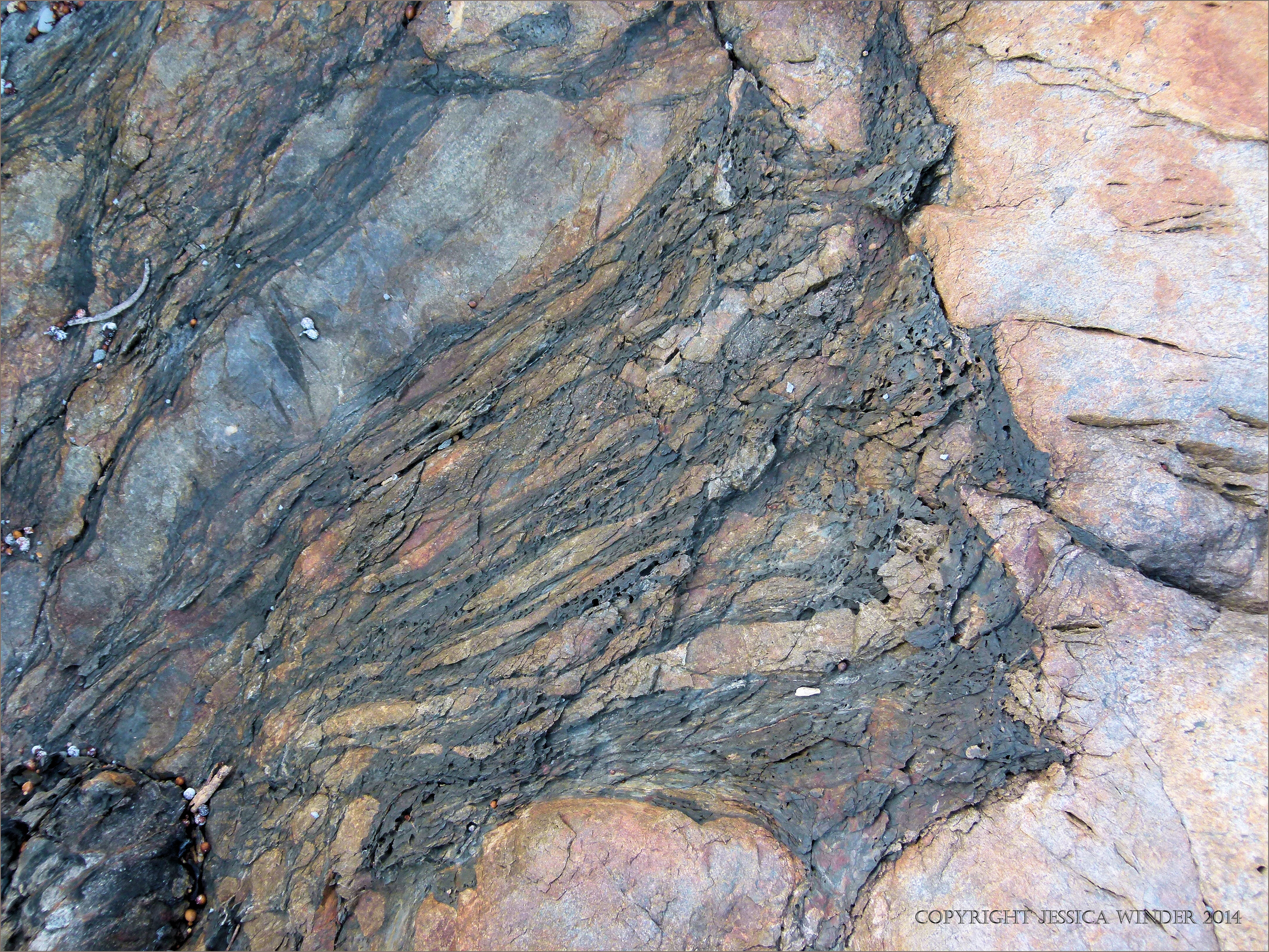 Port Douglas Rocks 42 – Colour and texture, possibly showing evidence of volcanic activity, in a rock outcrop near Four Mile Beach in Port Douglas, Queensland, Australia.