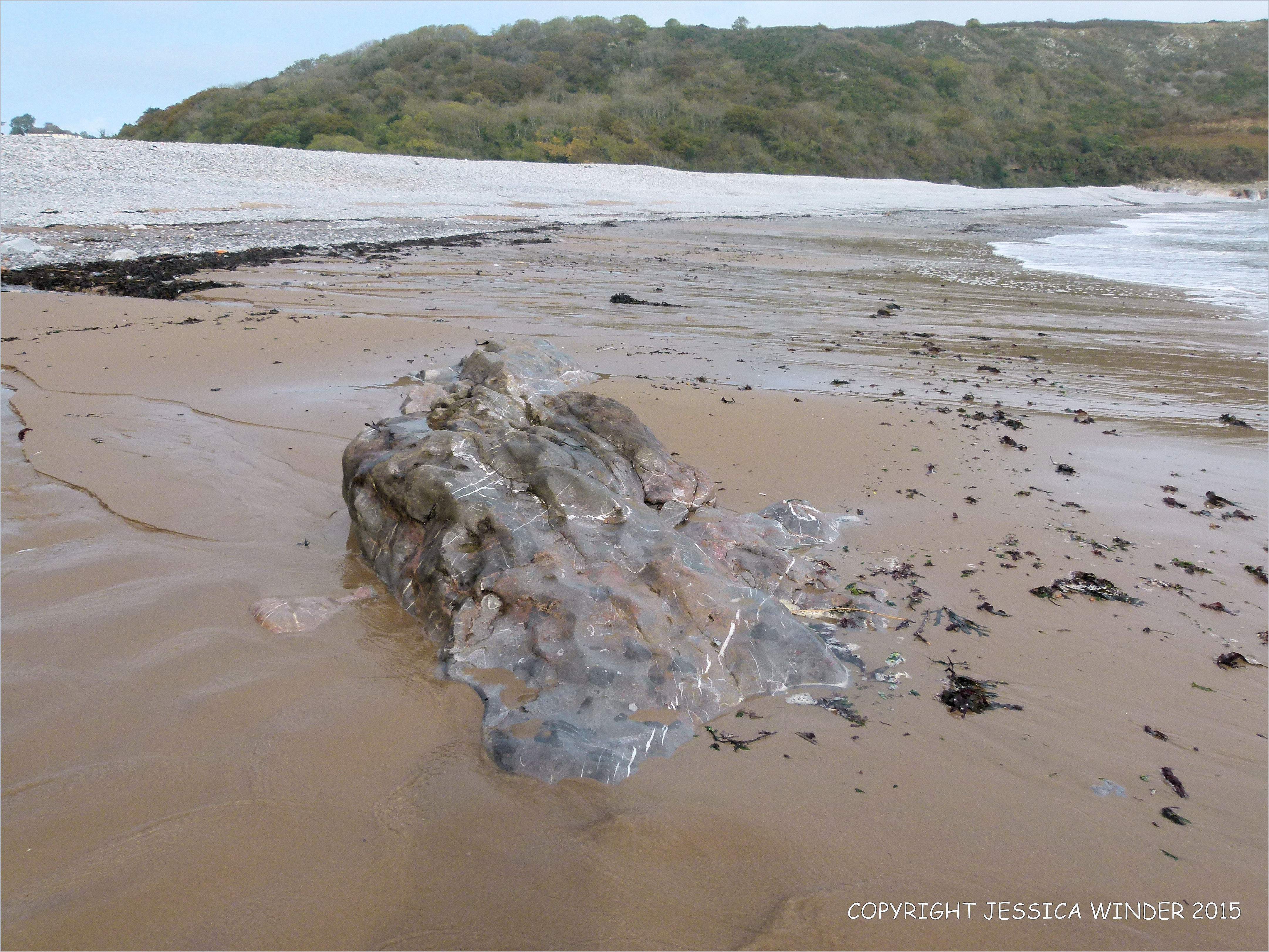 Pwll Du Rock Texture & Pattern 8 – View looking east at rocky outcrop of Carboniferous Limestone in the sand at ebbing tide at Pwll Du Bay, Gower, South Wales.