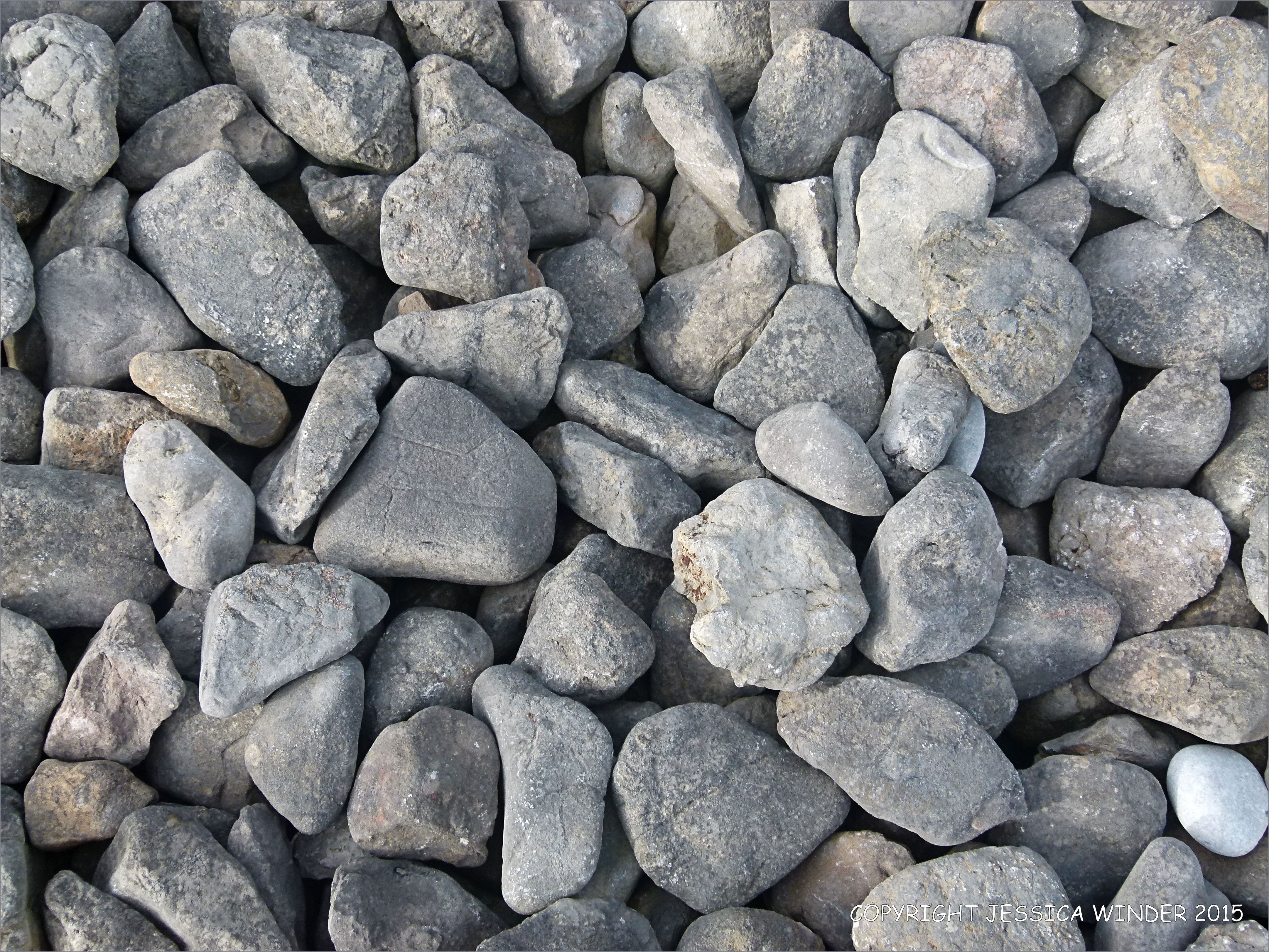Pwll Du Shingle Banks 32 – Pebbles derived from quarrying activity in the past forming the shingle banks at Pwll Du in Gower, South Wales.