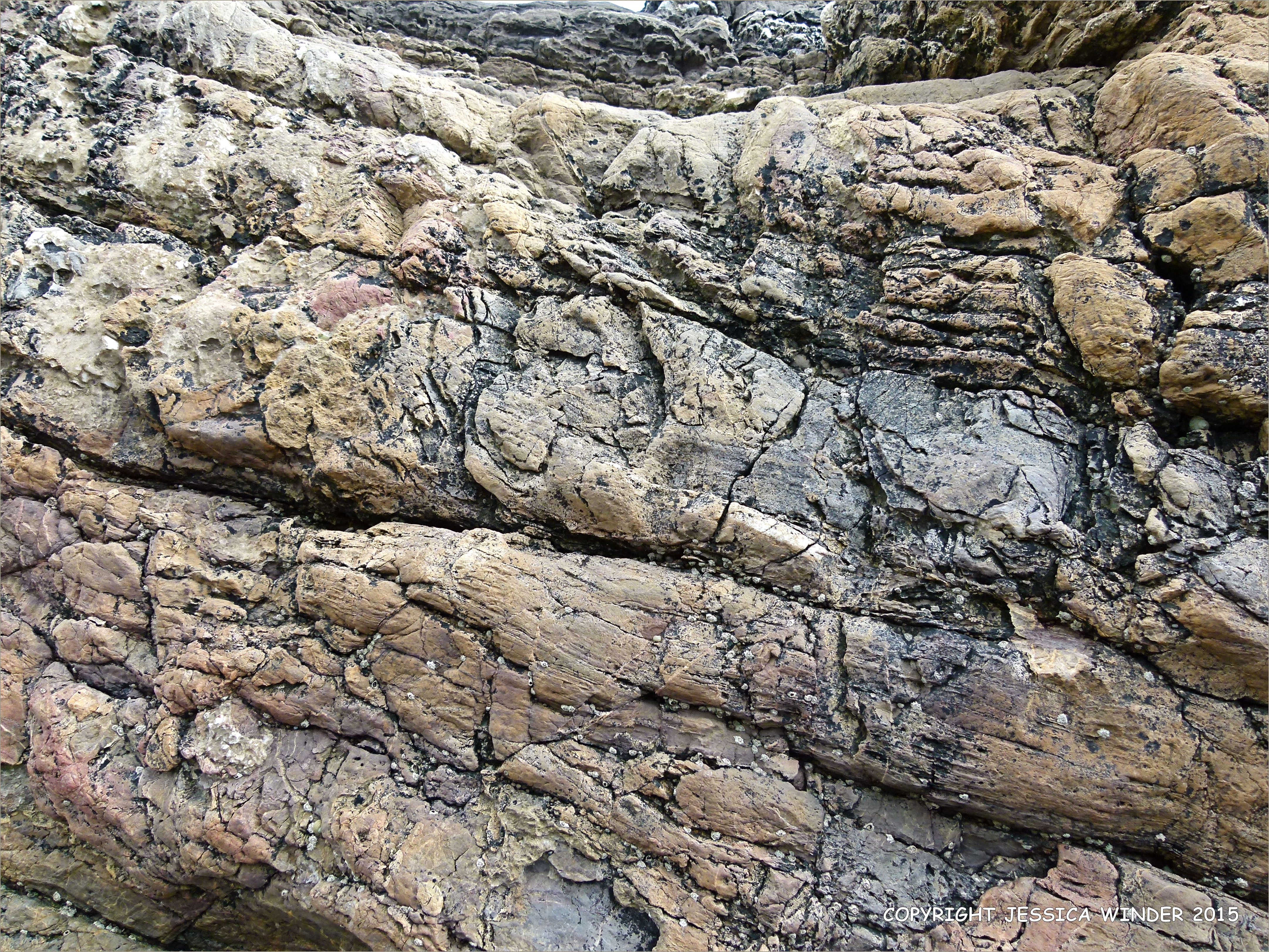 Caswell Bay Mudstones 6 – Rock colour and texture in Caswell Bay Mudstone strata at Caswell Bay on the Gower Peninsula in South Wales.