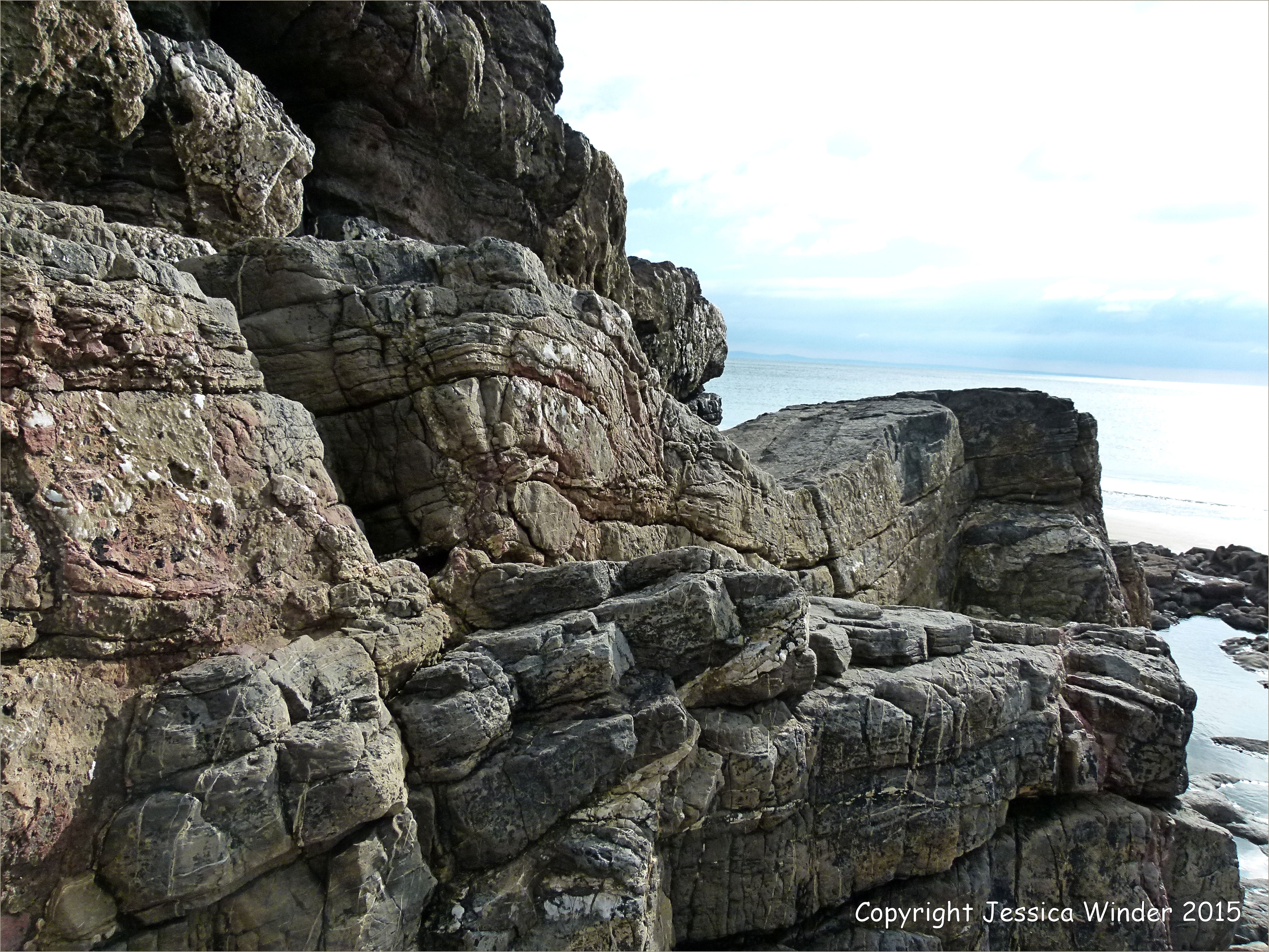 Caswell Bay Mudstones 17 – Rock colour and texture in Caswell Bay Mudstone strata at Caswell Bay on the Gower Peninsula in South Wales.
