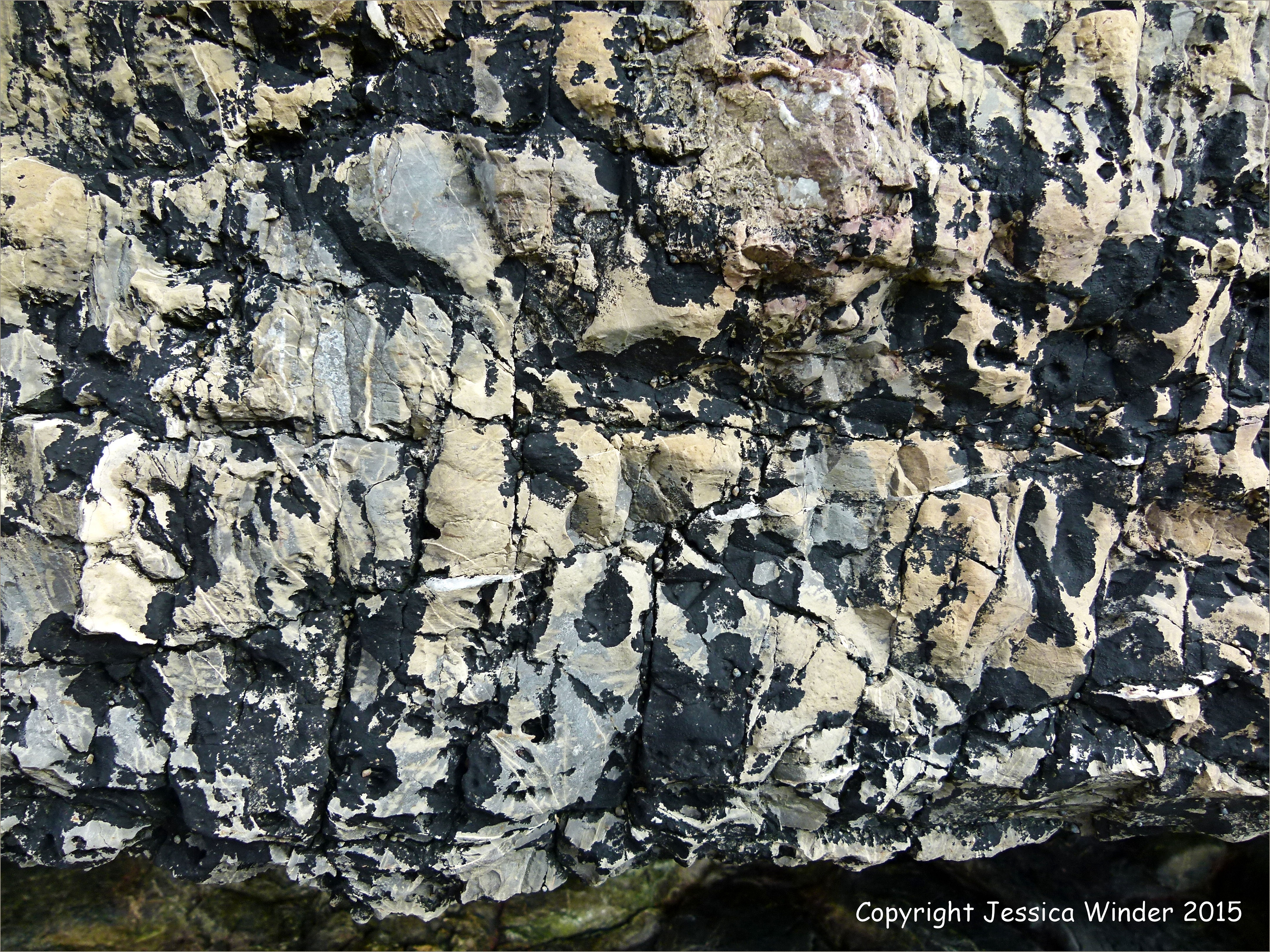 Caswell Bay Mudstones 41 – Rock colour and texture in Caswell Bay Mudstone strata at Caswell Bay on the Gower Peninsula in South Wales.
