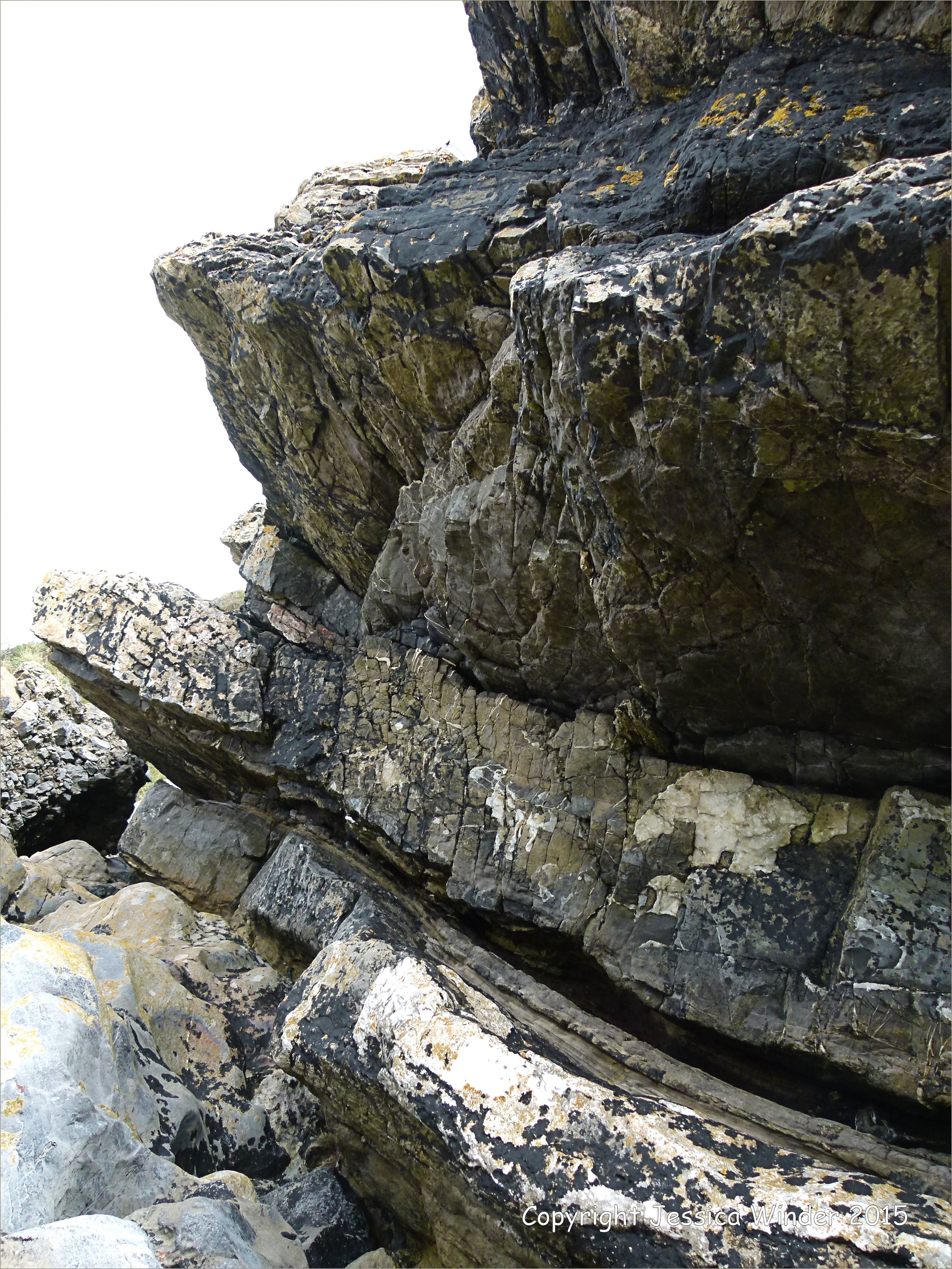 Caswell Bay Mudstones 48 – Rock colour and texture in Caswell Bay Mudstone strata at Caswell Bay on the Gower Peninsula in South Wales.