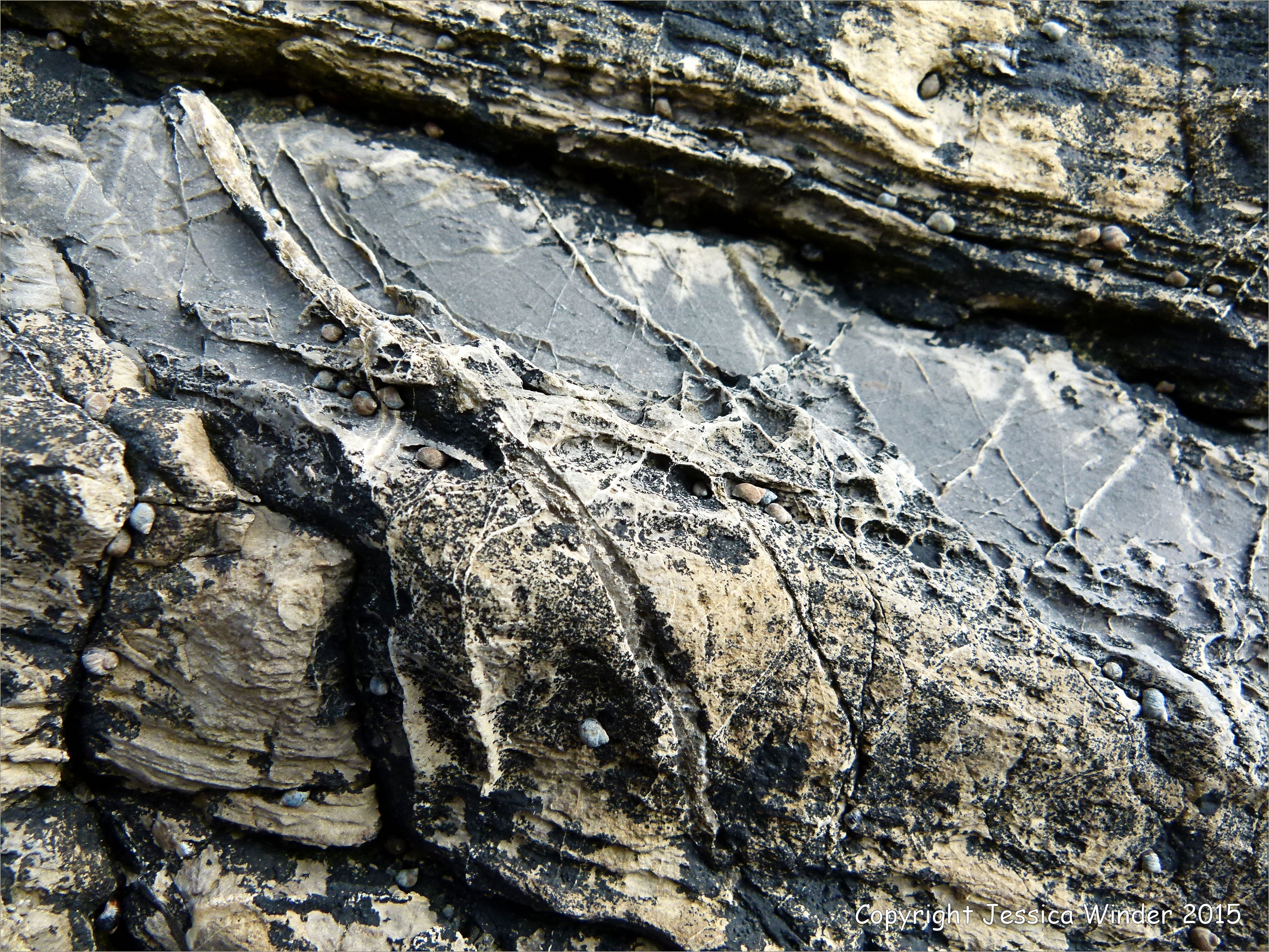 Caswell Bay Mudstones 52 – Rock colour and texture in Caswell Bay Mudstone strata at Caswell Bay on the Gower Peninsula in South Wales.