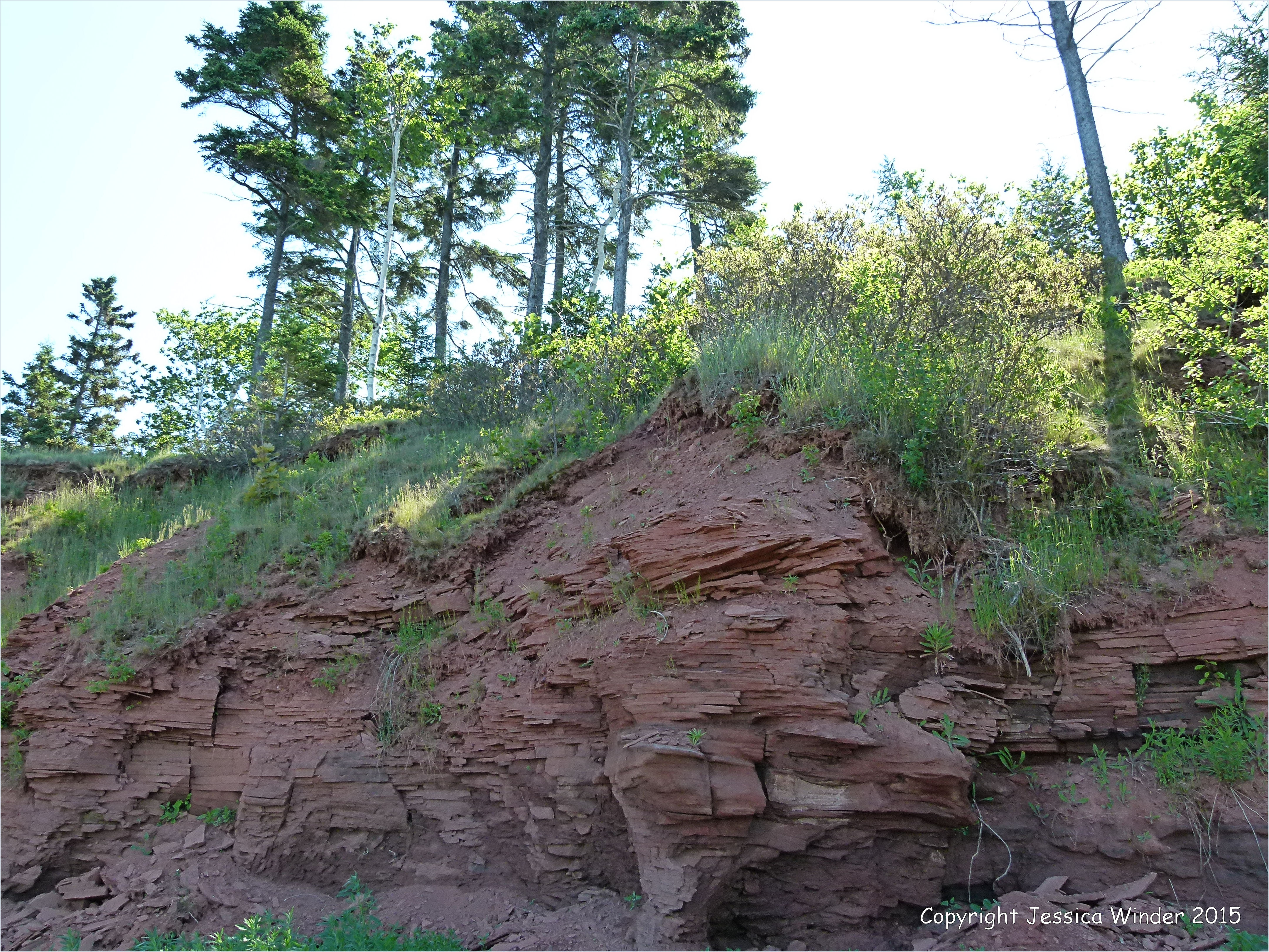 Lord Selkirk Park 4 – Low cliff of red Permian rock on the shore at Lord Selkirk Provincial Park in Prince Edward Island, Atlantic Canada.