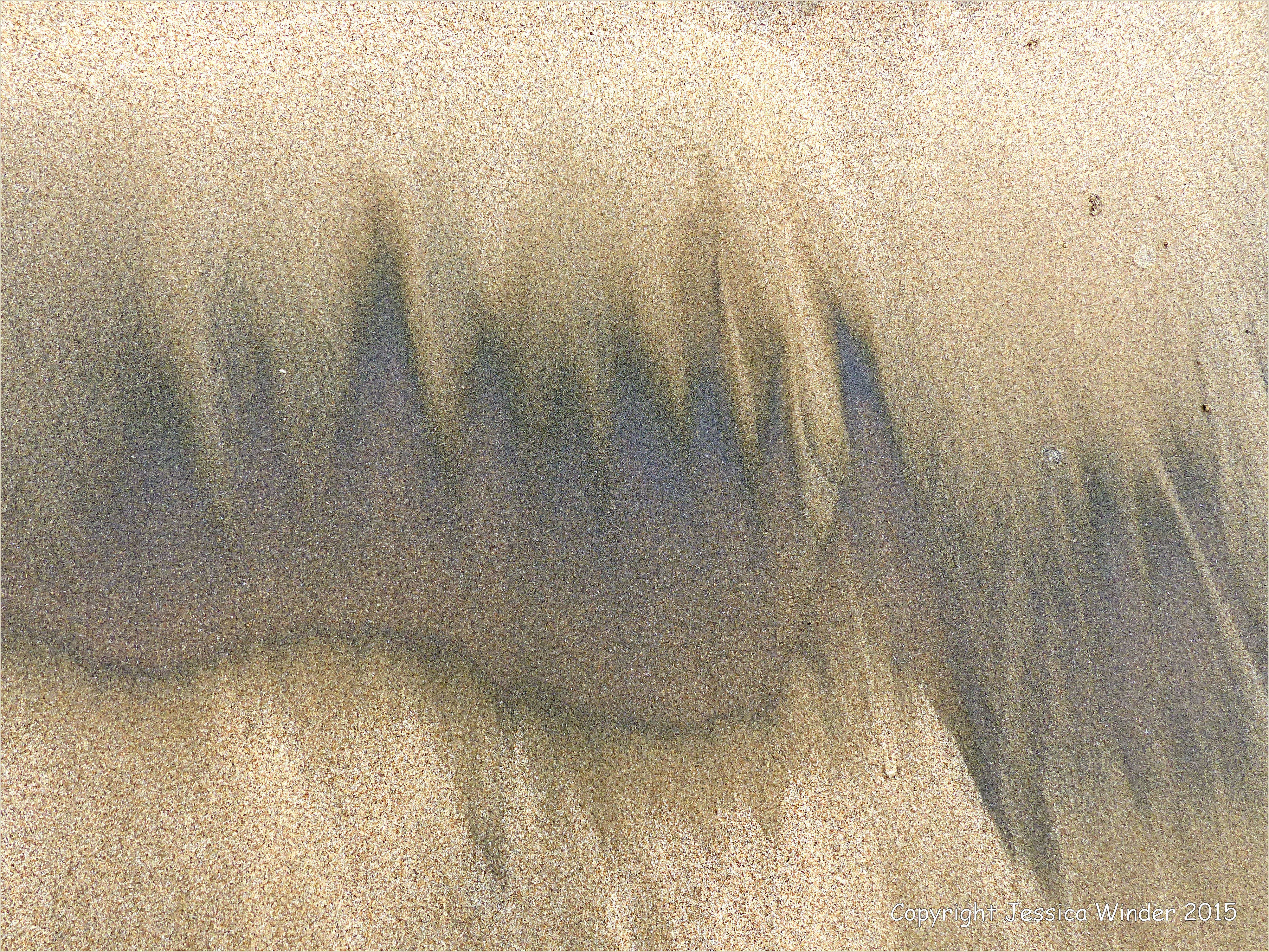 Rhossili Sand Patterns 8 – Natural patterns of dark streaks along the driftlines of the sandy beach at low tide in Rhossili Bay, Gower, South Wales, 7 March 2015.