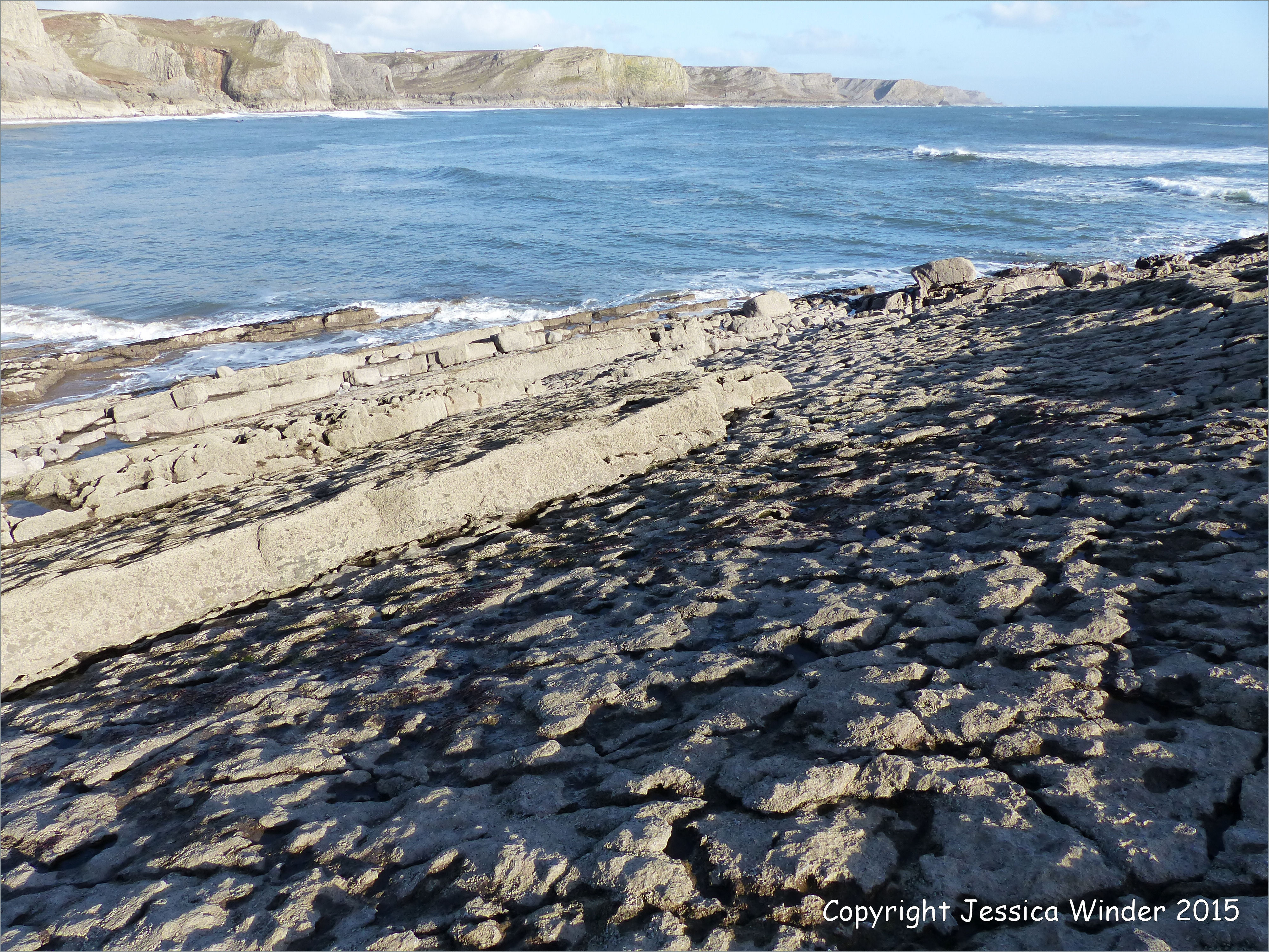 Rocks on the west side of Fall Bay 10 – Texture in Carboniferous Limestone rock strata at Fall Bay in Gower, South Wales