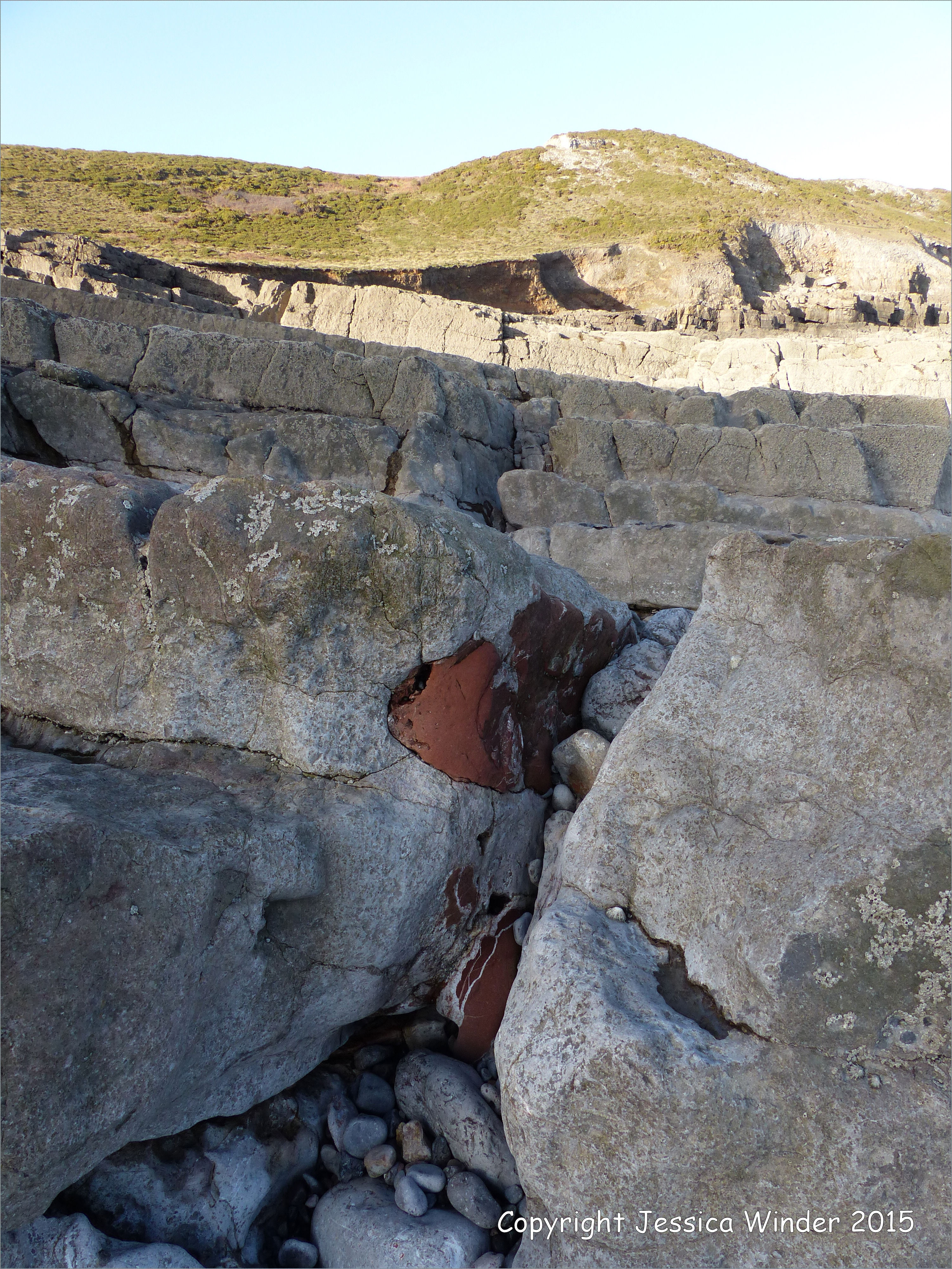 Rocks on the west side of Fall Bay 22 – Texture in Carboniferous Limestone rock strata at Fall Bay in Gower, South Wales