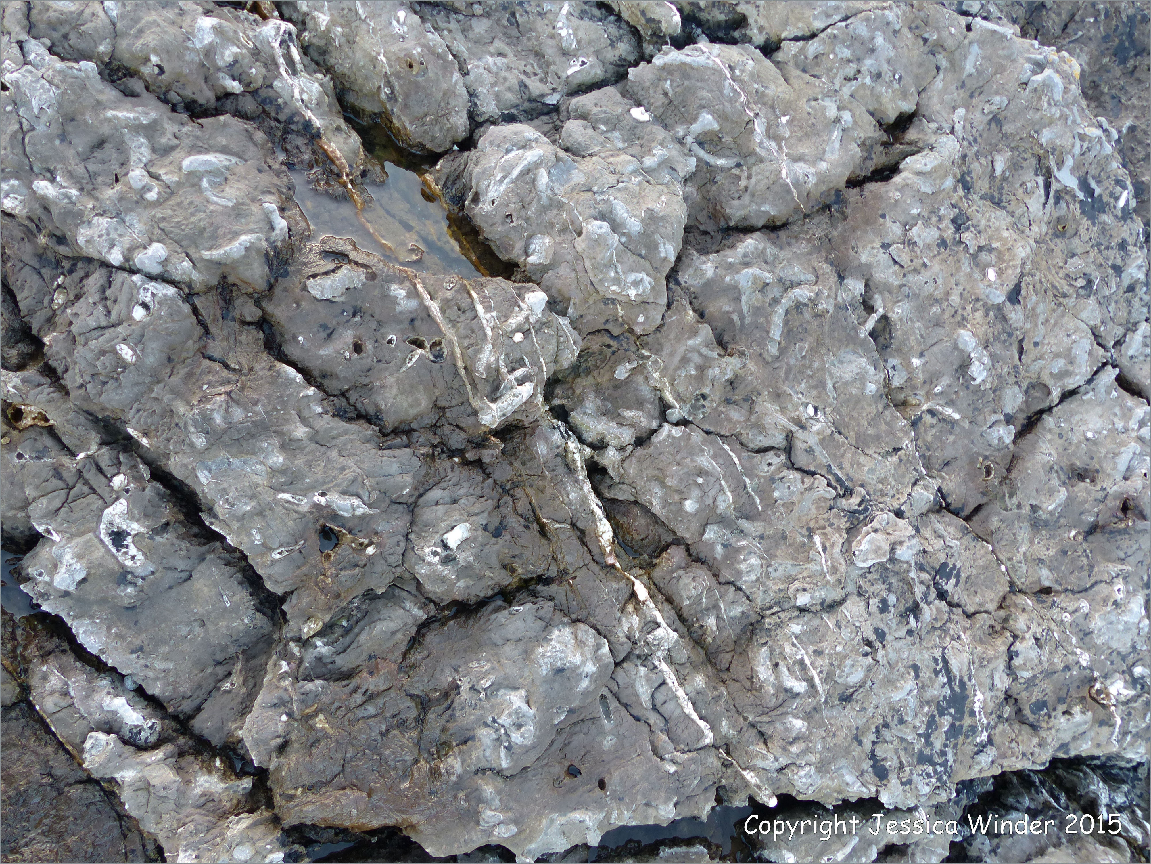 Rocks on the west side of Fall Bay 29 – Texture in Carboniferous Limestone rock strata at Fall Bay in Gower, South Wales