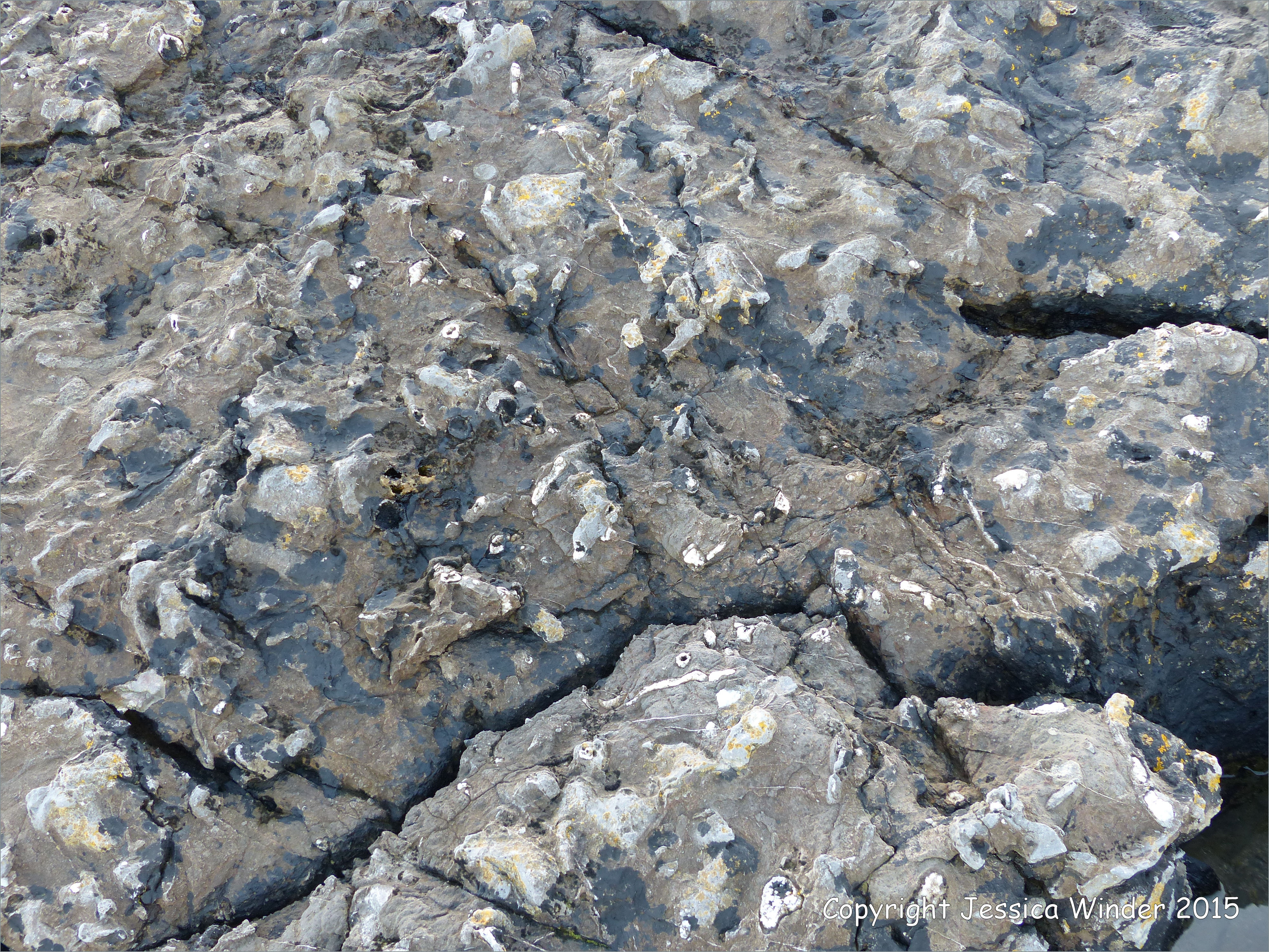 Rocks on the west side of Fall Bay 30 – Texture in Carboniferous Limestone rock strata at Fall Bay in Gower, South Wales