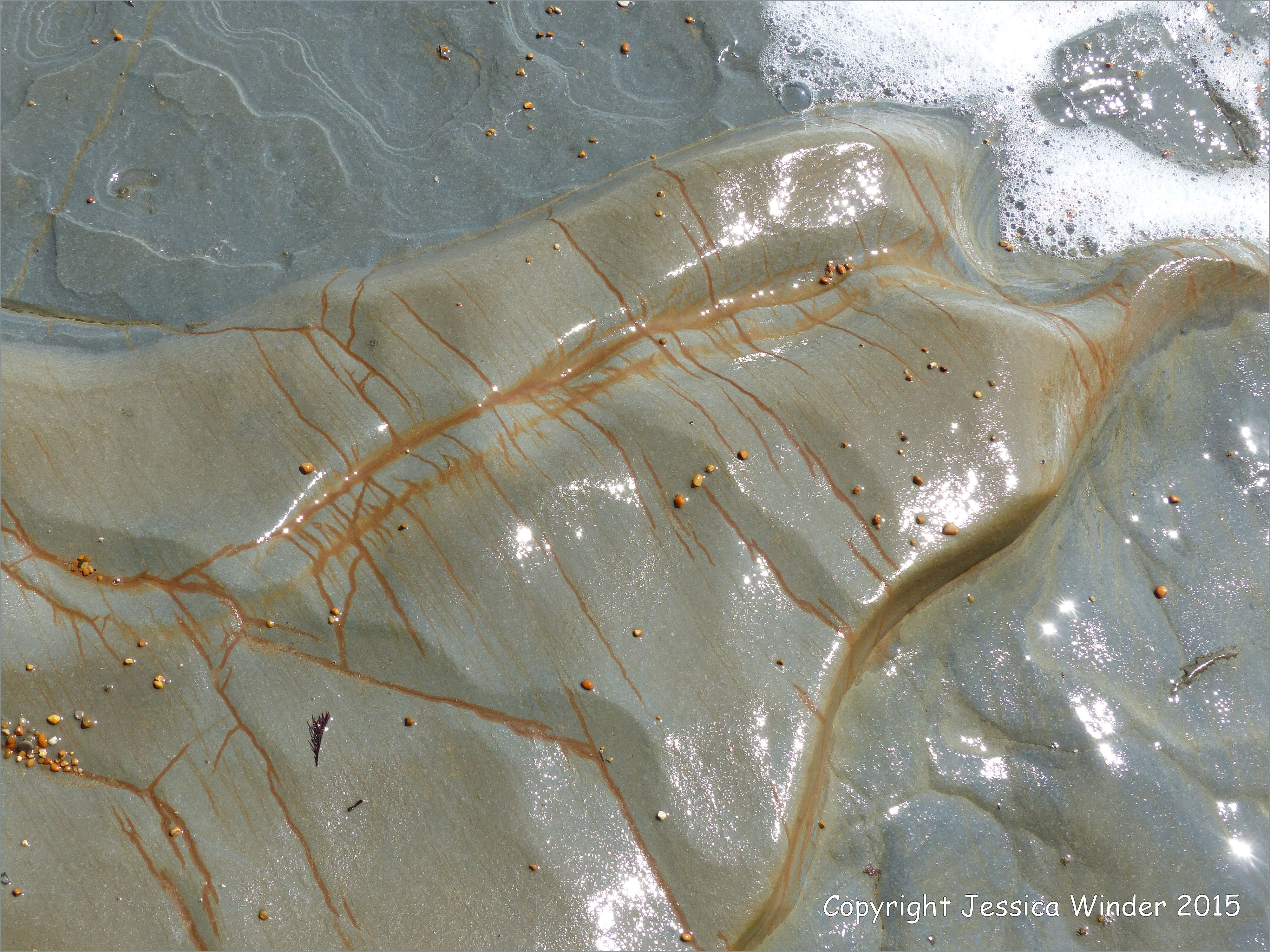 Wet Boulders at Eype 12 – Detail of structure in a beach boulder in shingle on the water’s edge at Eype in Dorset, England, on the World Heritage Jurassic Coast.