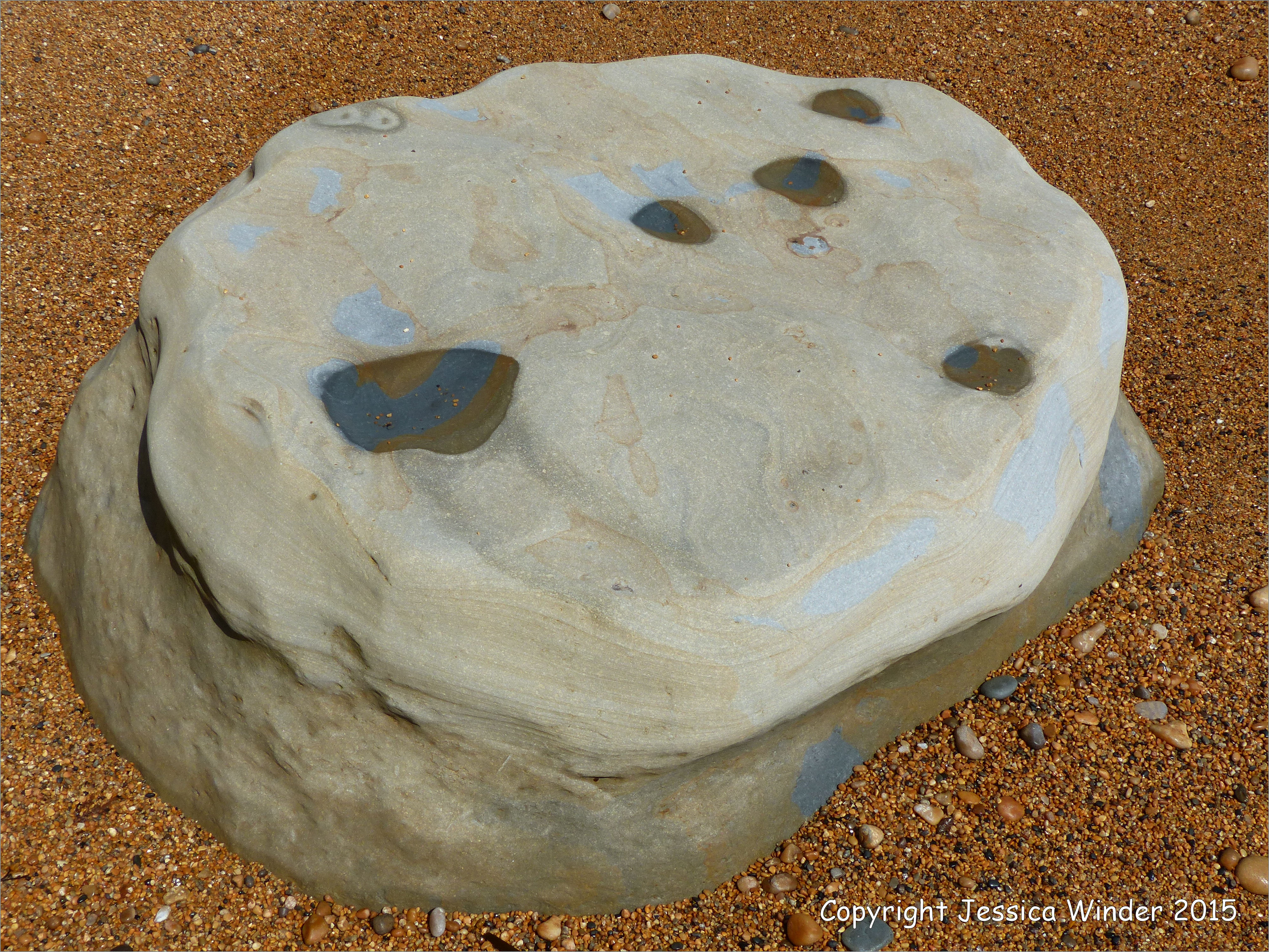 Wet Boulders at Eype 17 – Beach boulder in shingle on the water’s edge at Eype in Dorset, England, on the World Heritage Jurassic Coast.