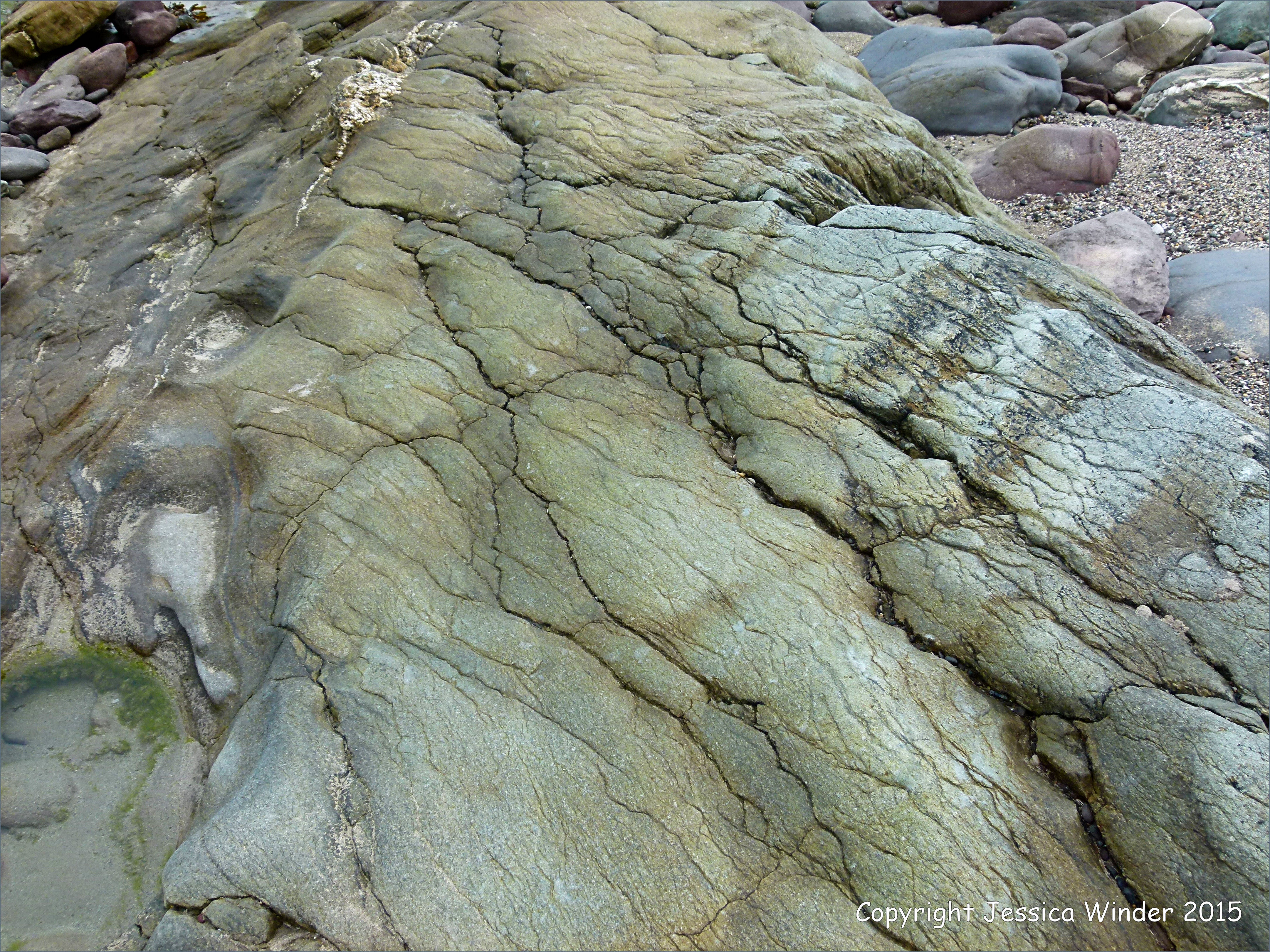 Fermoyle Rocks 15 – Sandstone rocks of the Glengarriff Harbour Group of the Devonian (formerly known as the Old Red Sandstone) on the shore at Fermoyle on the north coast of the Dingle Peninsula on the west coast of Ireland.