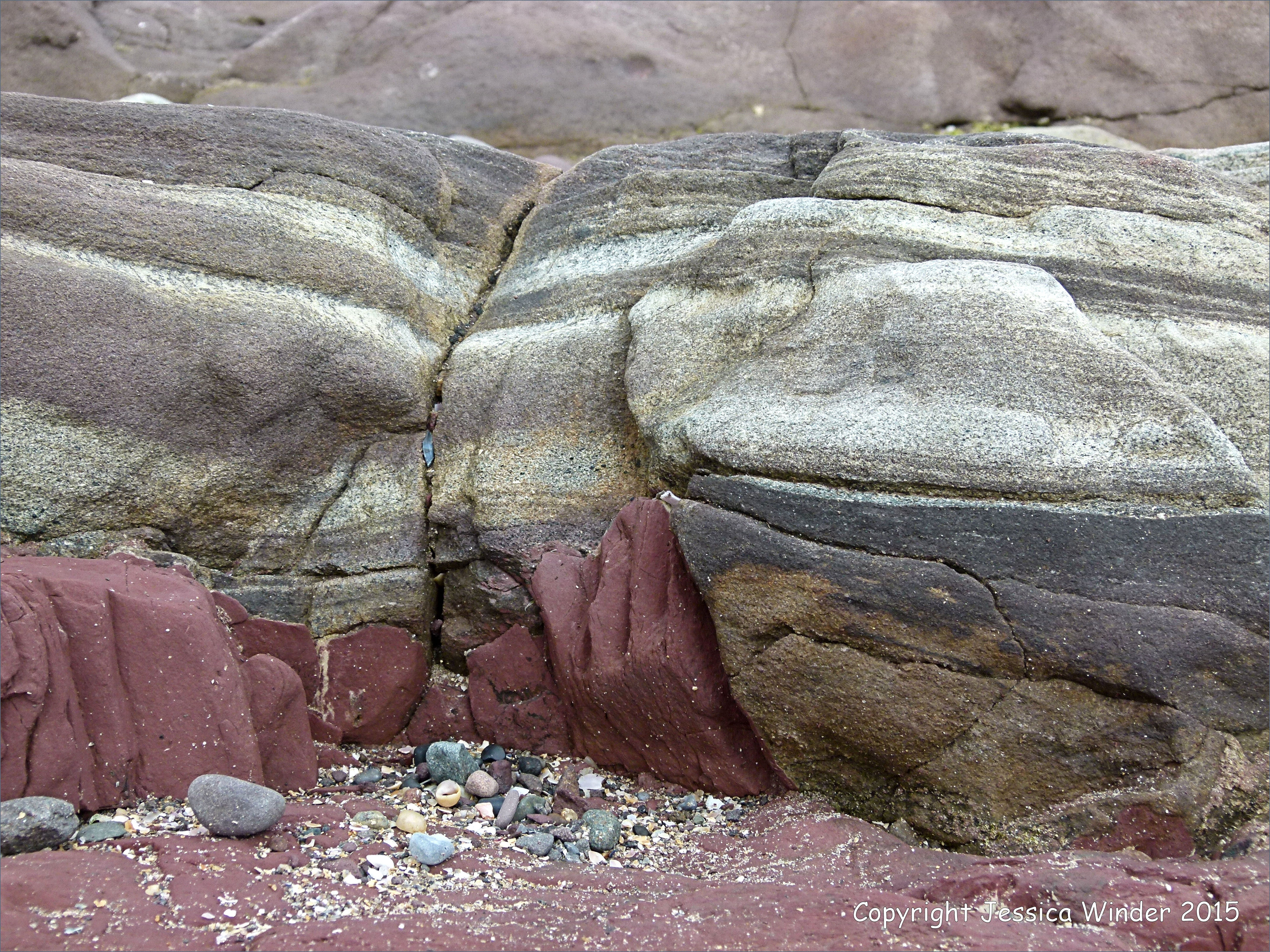 Fermoyle Rocks 21 – Sandstone rocks of the Glengarriff Harbour Group of the Devonian (formerly known as the Old Red Sandstone) on the shore at Fermoyle on the north coast of the Dingle Peninsula on the west coast of Ireland.