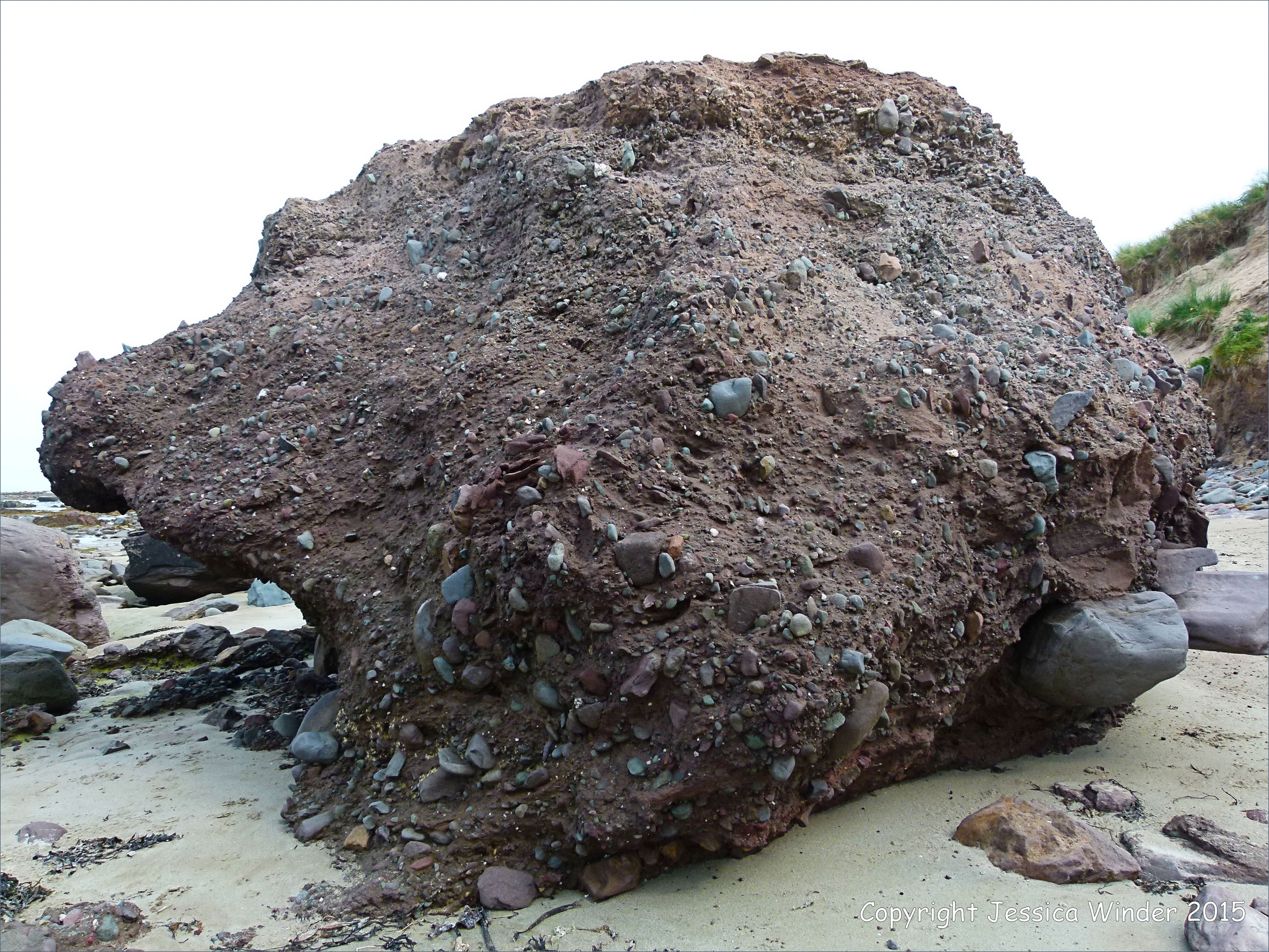 Fermoyle Rocks 37 – Large conglomerate boulder of the Glengarriff Harbour Group of the Devonian (formerly known as the Old Red Sandstone) on the shore at Fermoyle on the north coast of the Dingle Peninsula on the west coast of Ireland.