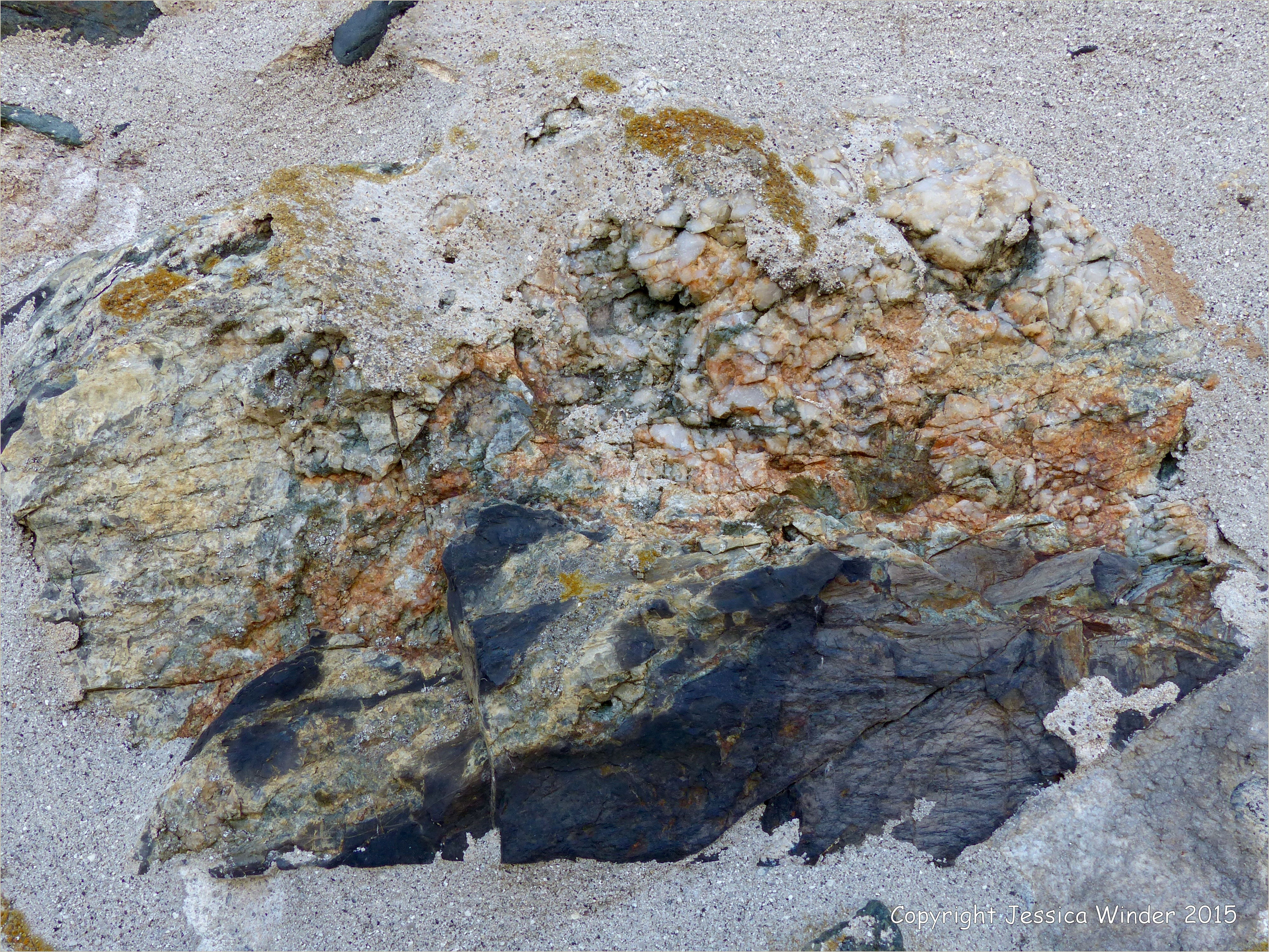 Stone Wall 14 – Natural colour, pattern, and texture in native Cornish rocks in building walls, including igneous and metamorphic rocks, granites and slates, from the region around St Ives.
