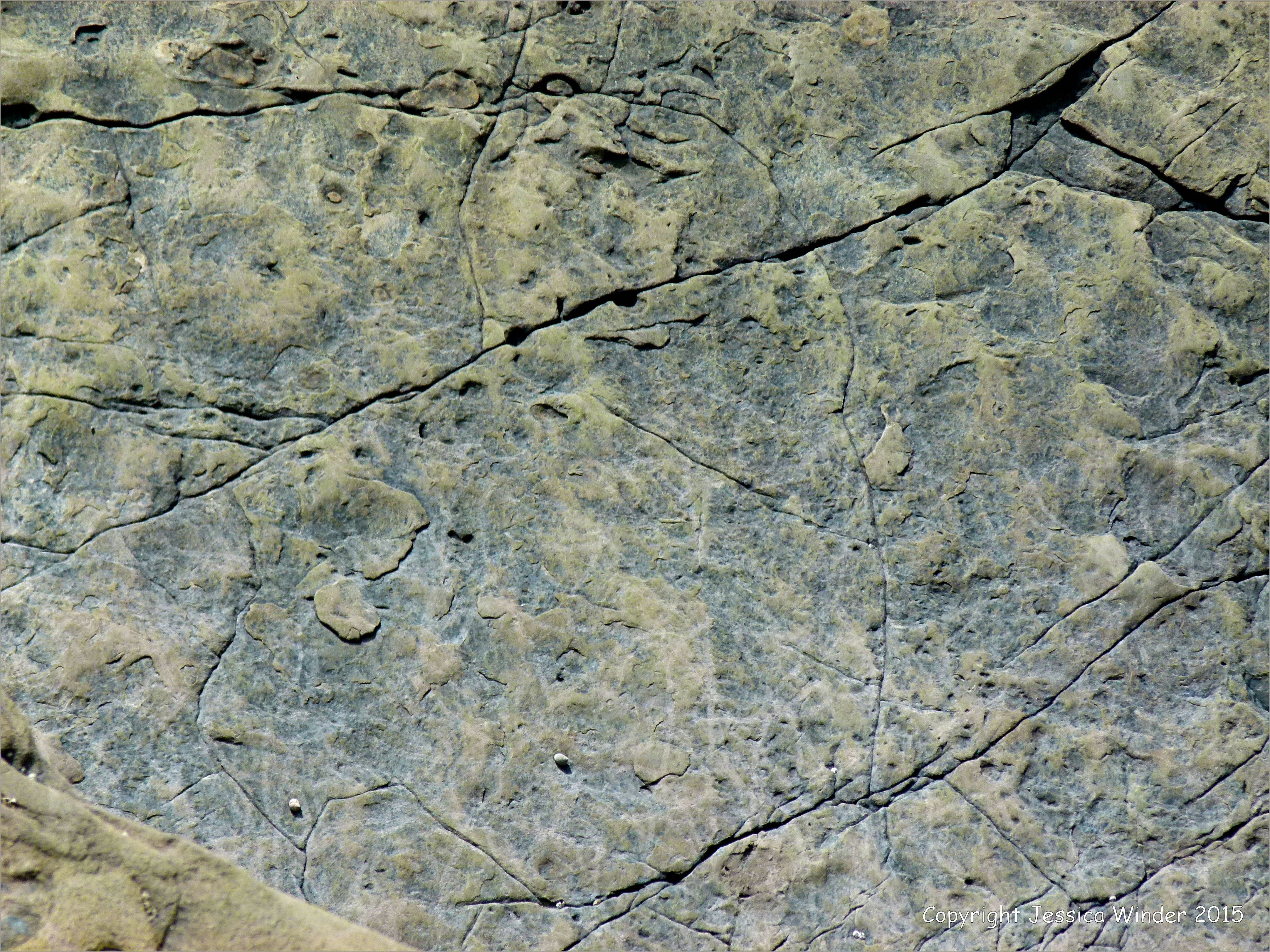 Rocks Near Cape Enrage 6 – Detail of weathering pattern on an exposed bedding plane of Late Carboniferous Period lower cliff rocks of the Mabou Group, west of Cape Enrage in New Brunswick, Canada, on the north shore of the Bay of Fundy.