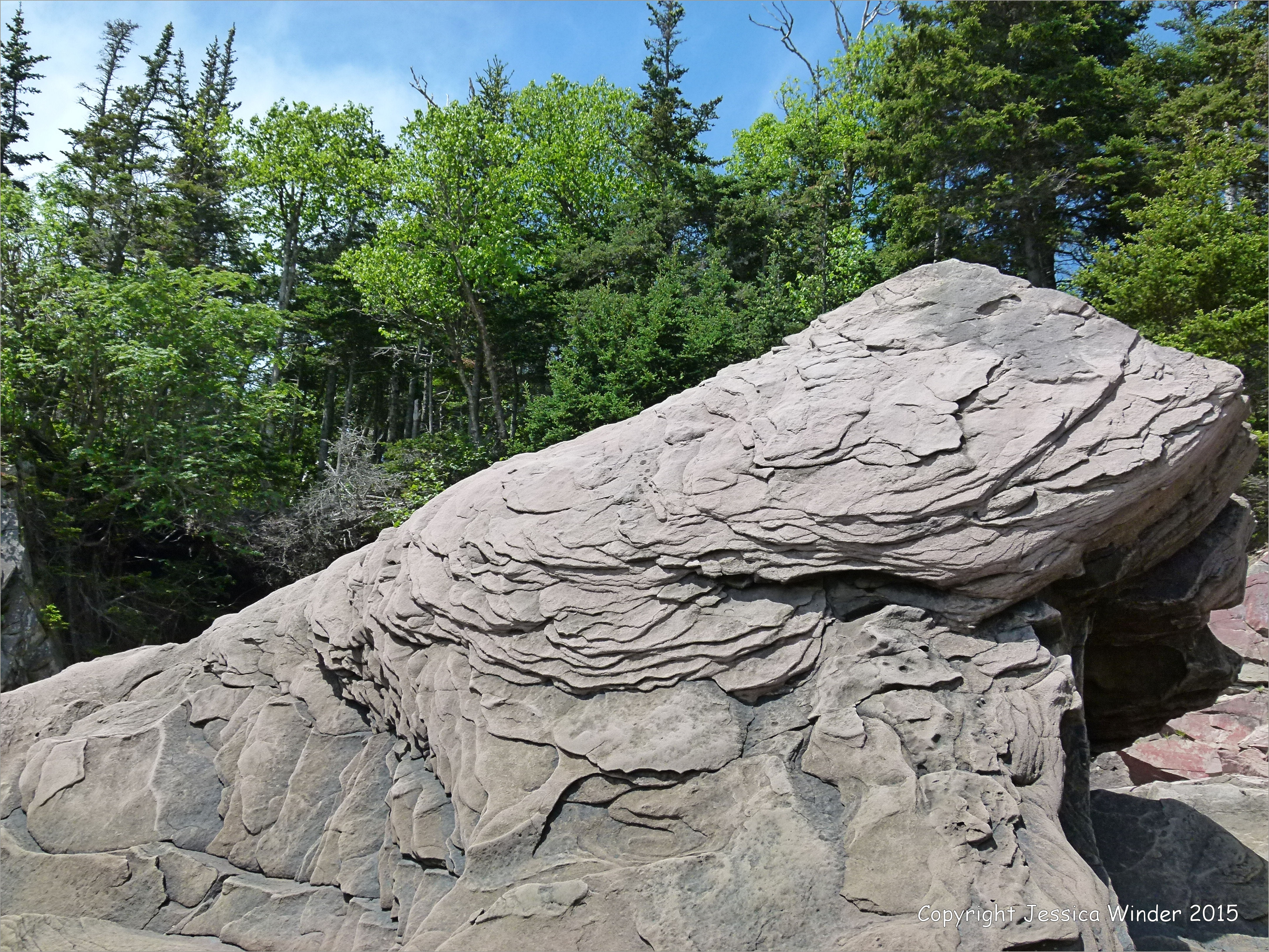 Rocks Near Cape Enrage 21 – Rocky outcrop of Late Carboniferous Period rocks of the Mabou Group west of Cape Enrage in New Brunswick, Canada, on the north shore of the Bay of Fundy.