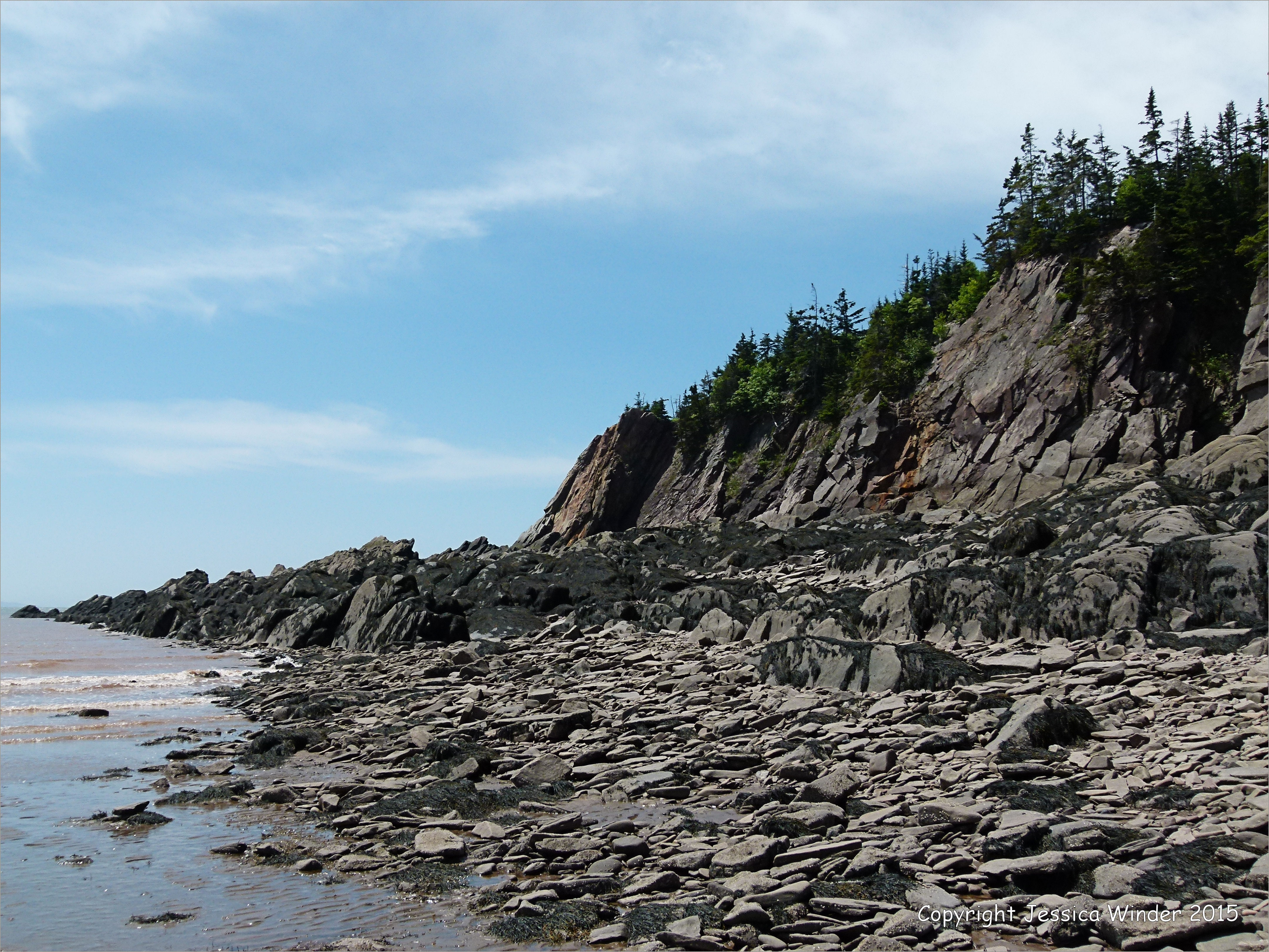 Rocks Near Cape Enrage 23 – Cliffs and boulders of Late Carboniferous Period rocks of the Mabou Group west of Cape Enrage in New Brunswick, Canada, on the north shore of the Bay of Fundy.