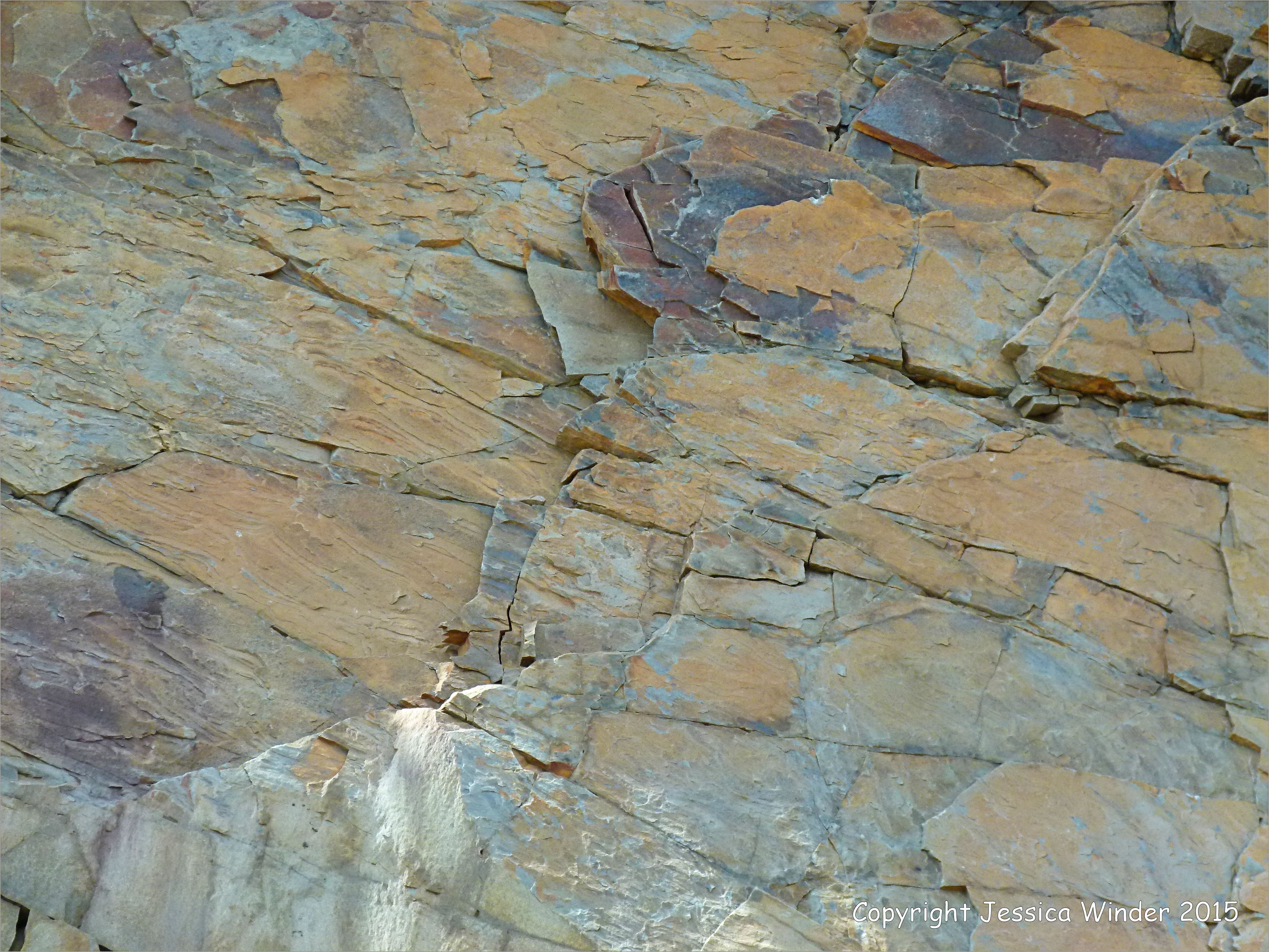 Cape Enrage Rocks 17 – Close-up of the natural rock patterns in the cliffs at Cape Enrage, New Brunswick, Canada. The rocks are from the Ward Point Member of the Cumberland Group belonging to the Carboniferous Period.