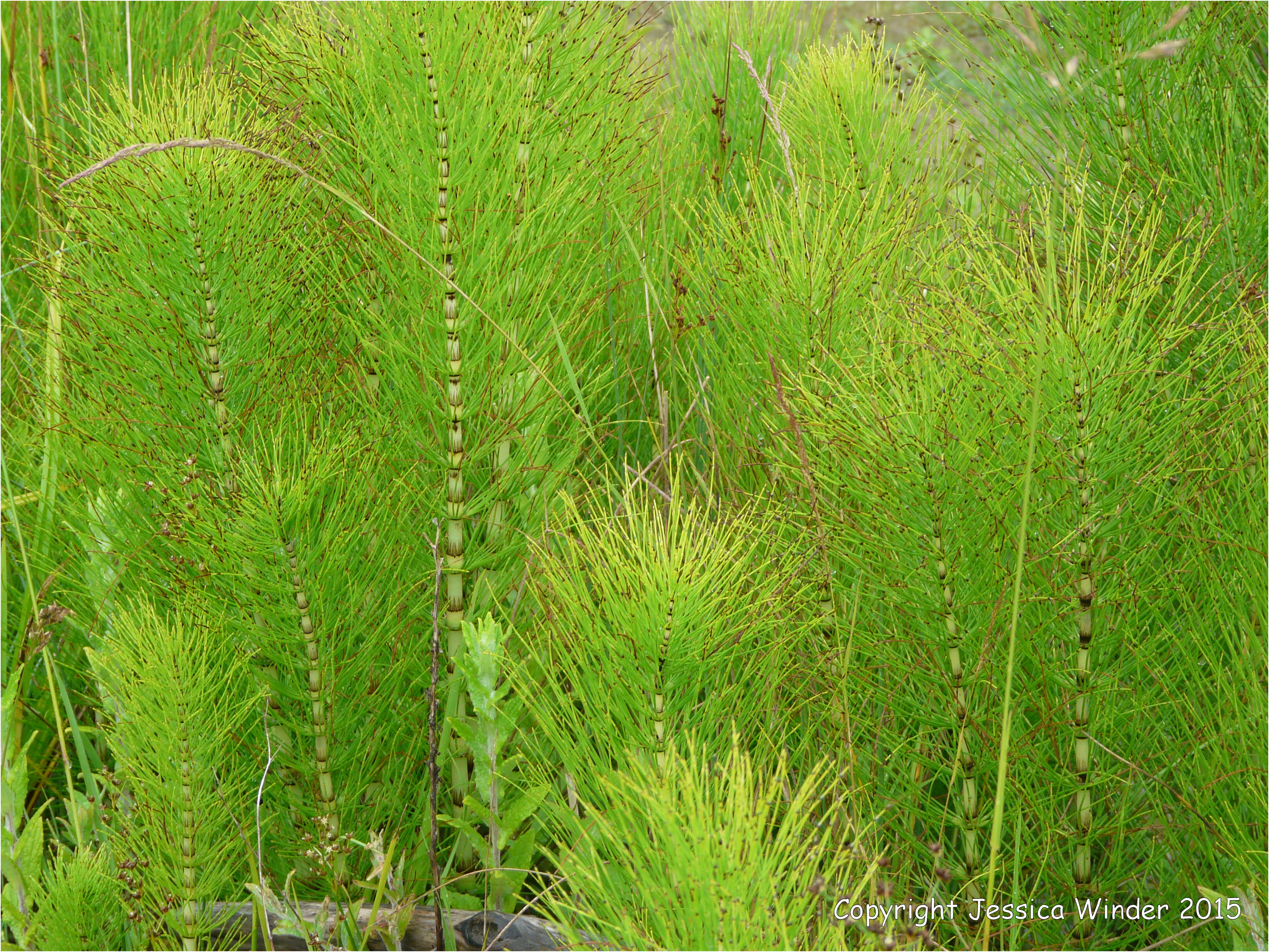Horsetails 3 – Horsetails (Equisetum arvense) growing in wet ground: a modern day plant related to the giant Calamites that are found as fossils in the Carboniferous Period.