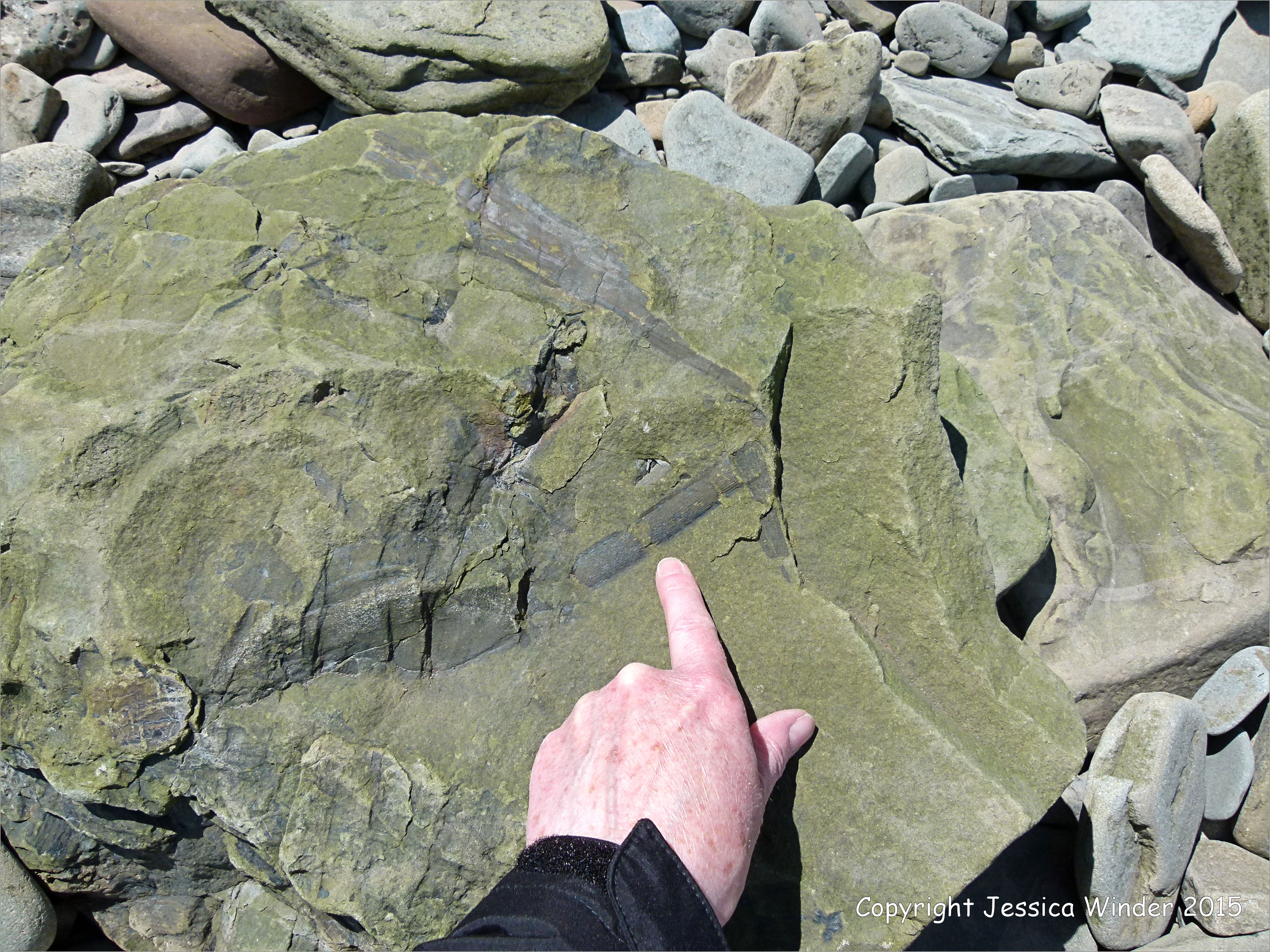 Cape Enrage Plant Fossils 6 – Carboniferous Period, Ward Point Member, plant fossils in beach stones at the foot of cliffs at Cape Enrage, New Brunswick, Canada, on the north shore of the Bay of Fundy.