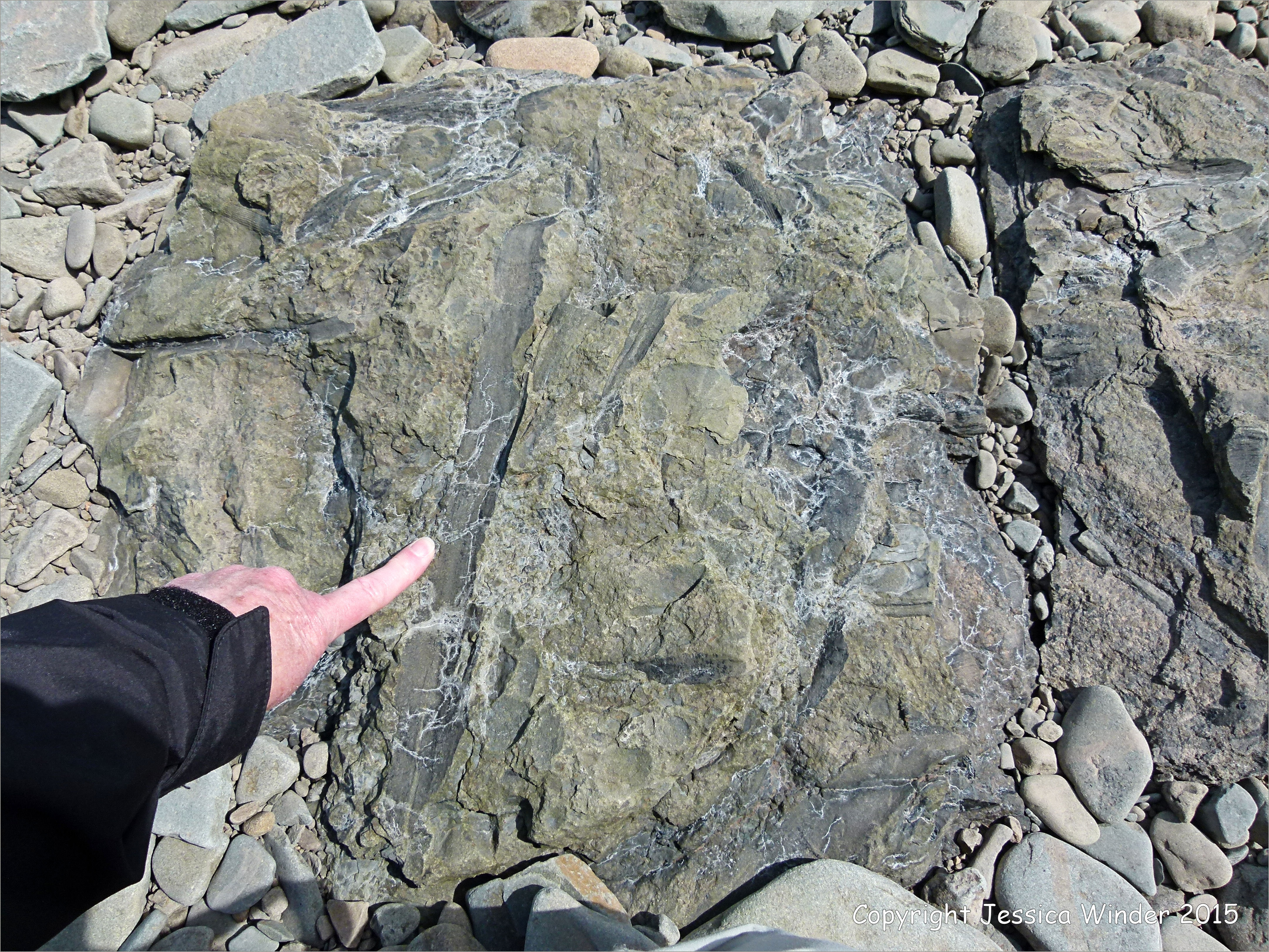 Cape Enrage Plant Fossils 10 – Carboniferous Period, Ward Point Member, plant fossils in beach stones at the foot of cliffs at Cape Enrage, New Brunswick, Canada, on the north shore of the Bay of Fundy.