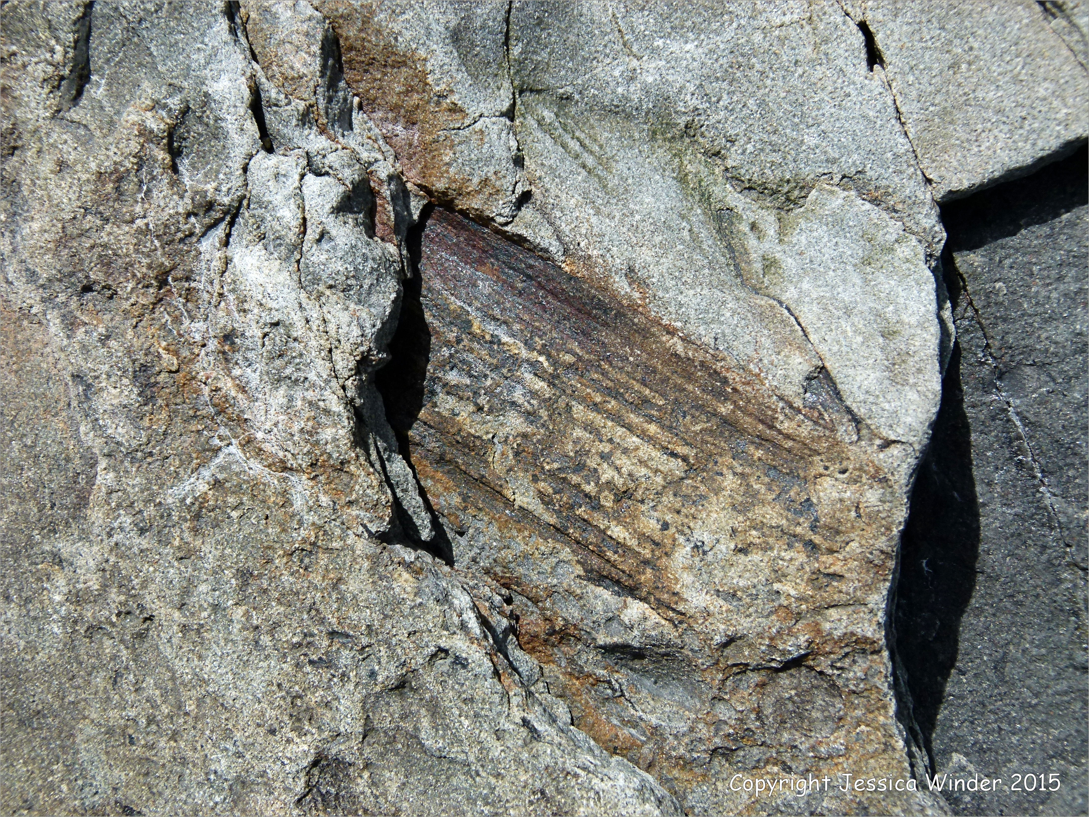 Cape Enrage Plant Fossils 13 – Carboniferous Period, Ward Point Member, plant fossils in beach stones at the foot of cliffs at Cape Enrage, New Brunswick, Canada, on the north shore of the Bay of Fundy.