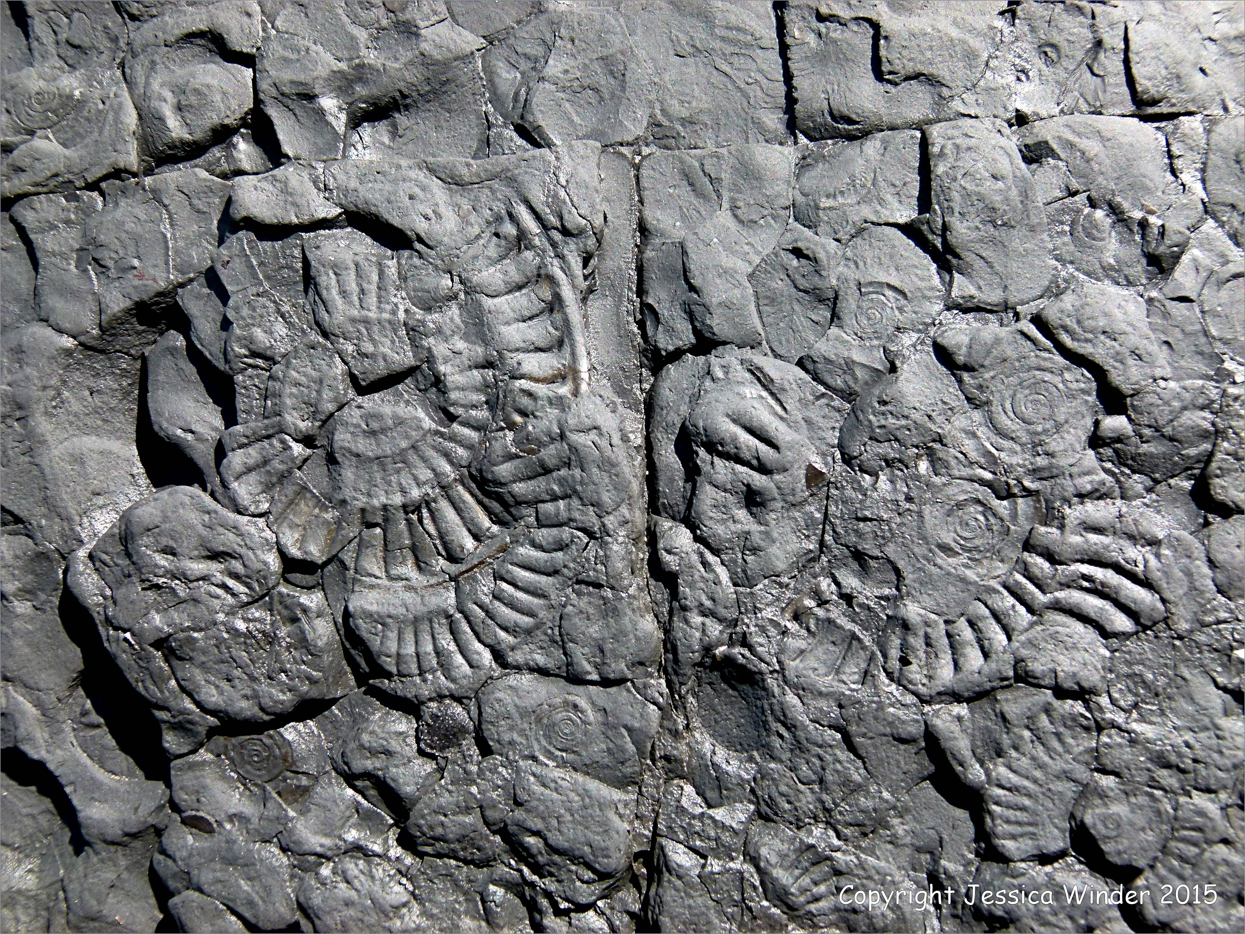 Colourful & Interesting Rocks 011 – Interesting ammonite fossil imprints in shale at Lyme Regis in Dorset, England