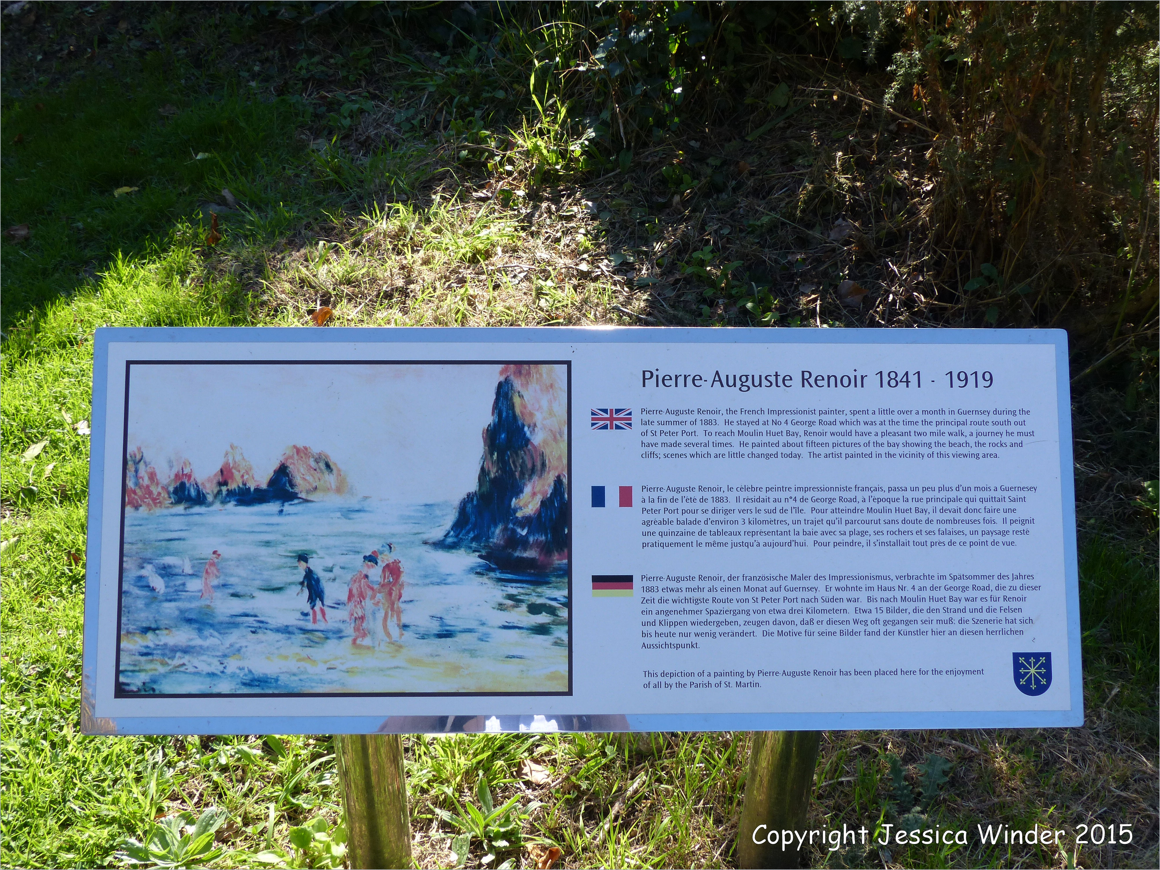 Moulin Huet & Pea Stacks 3 Moulin Huet & Pea Stacks 3 – Sign about the Renoir painting of Moulin Huet Bay and the Pea Stacks in Guernsey