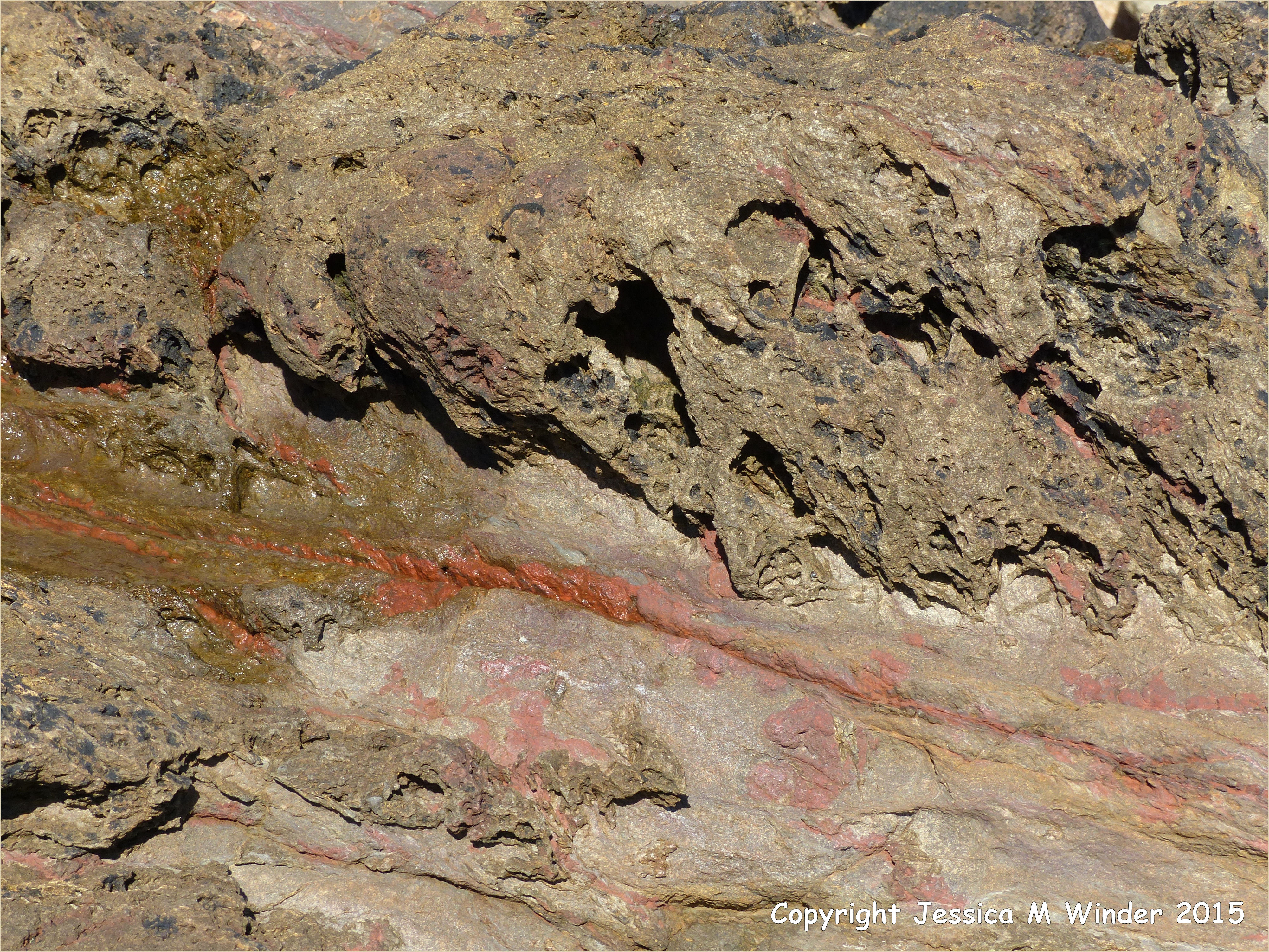 Lamprophyre Dyke at Moulin Huet 6 – Strange natural textures in the weathering surface of a lamprophyre dyke at Moulin Huet Bay in the Southern Metamorphic Complex on the Channel Island of Guernsey.