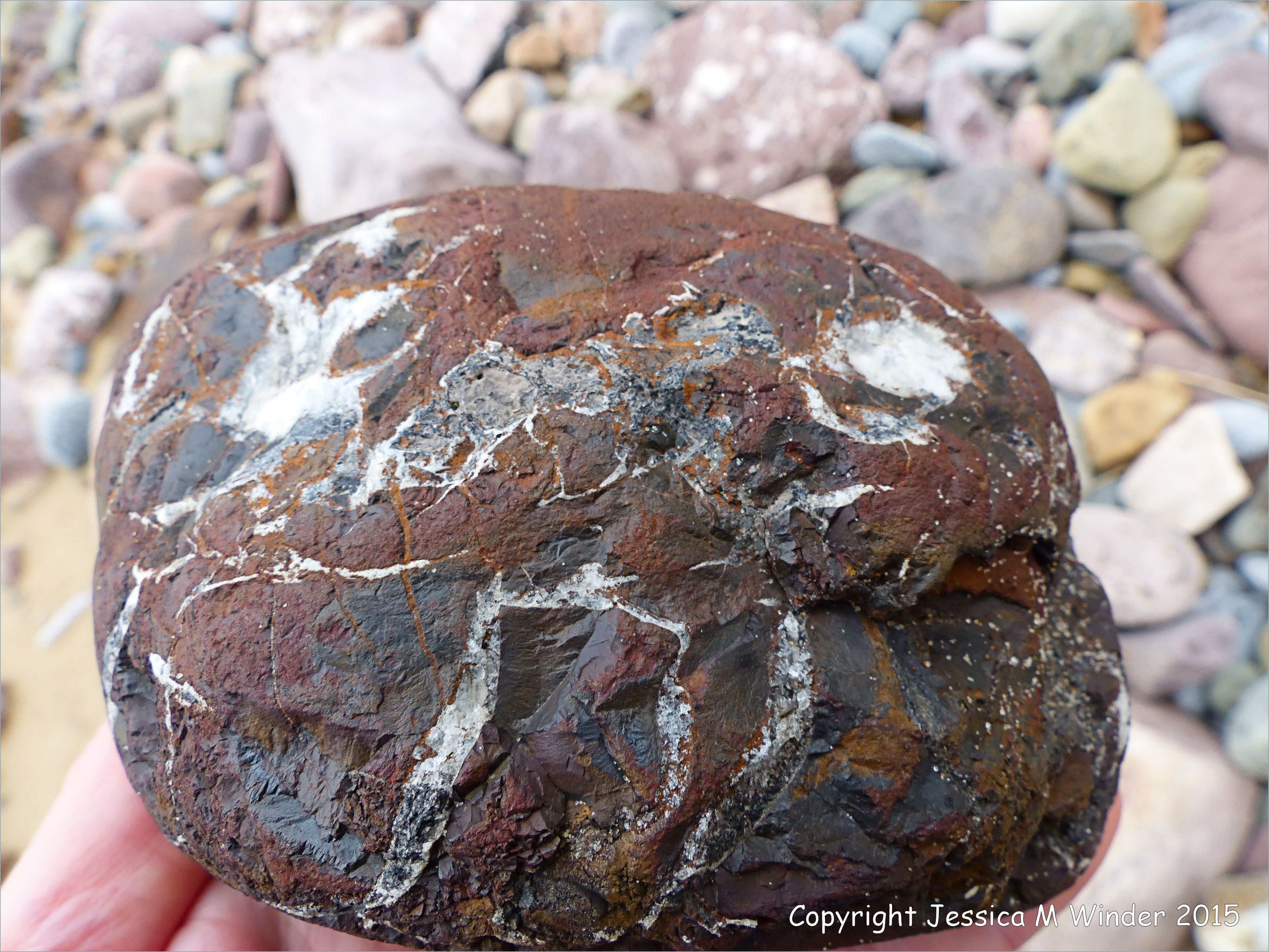 Rhossili Pebbles with Iron 13 – A beach stone made of iron on the upper shore of Rhossili at the foot of Rhossili Down, Gower Peninsula in South Wales.