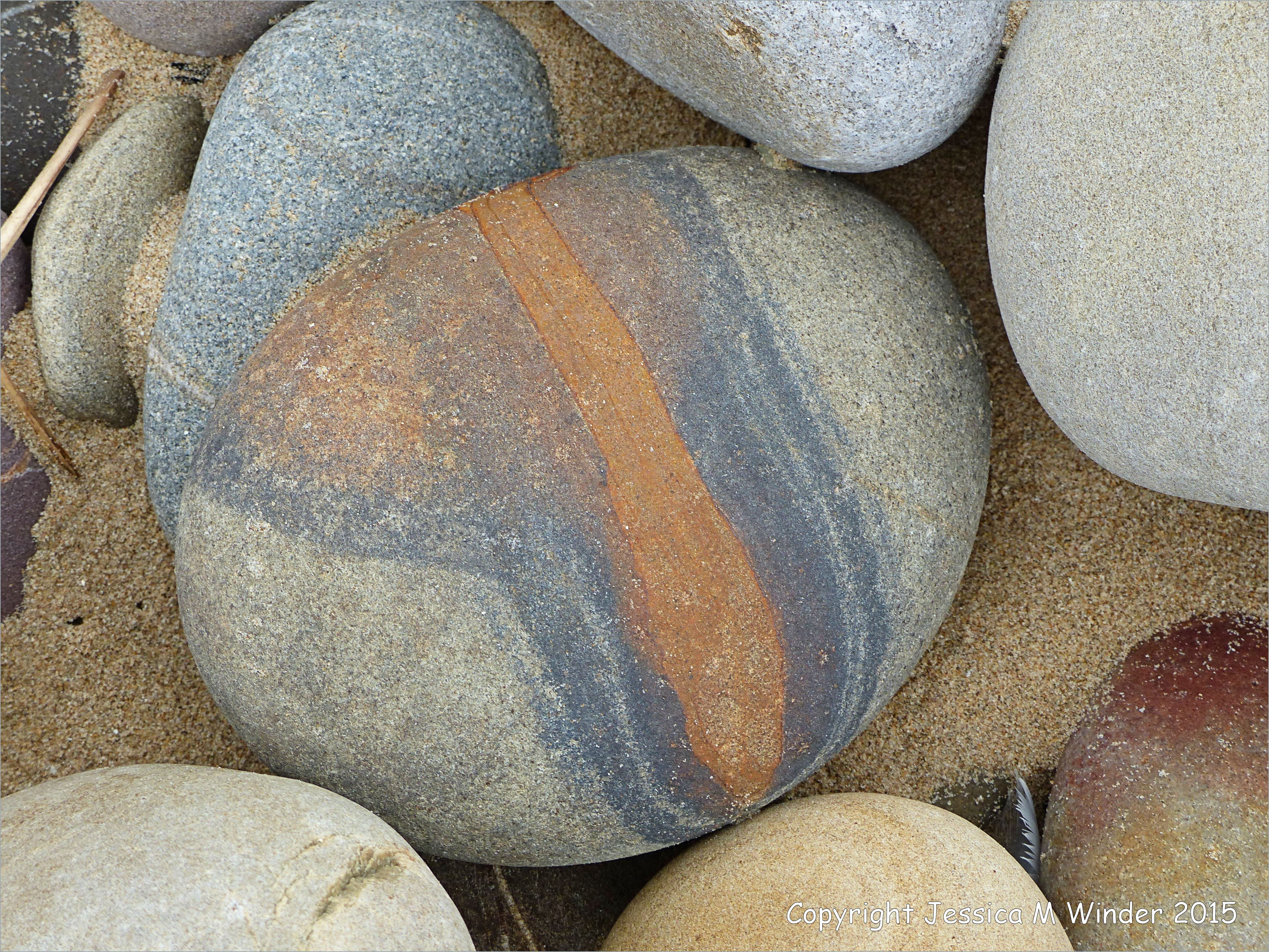 Rhossili Pebbles with Iron 22 Rhossili Pebbles with Iron 22 – Beach stone with iron on a Gower Peninsula beach at Rhossili, South Wales.
