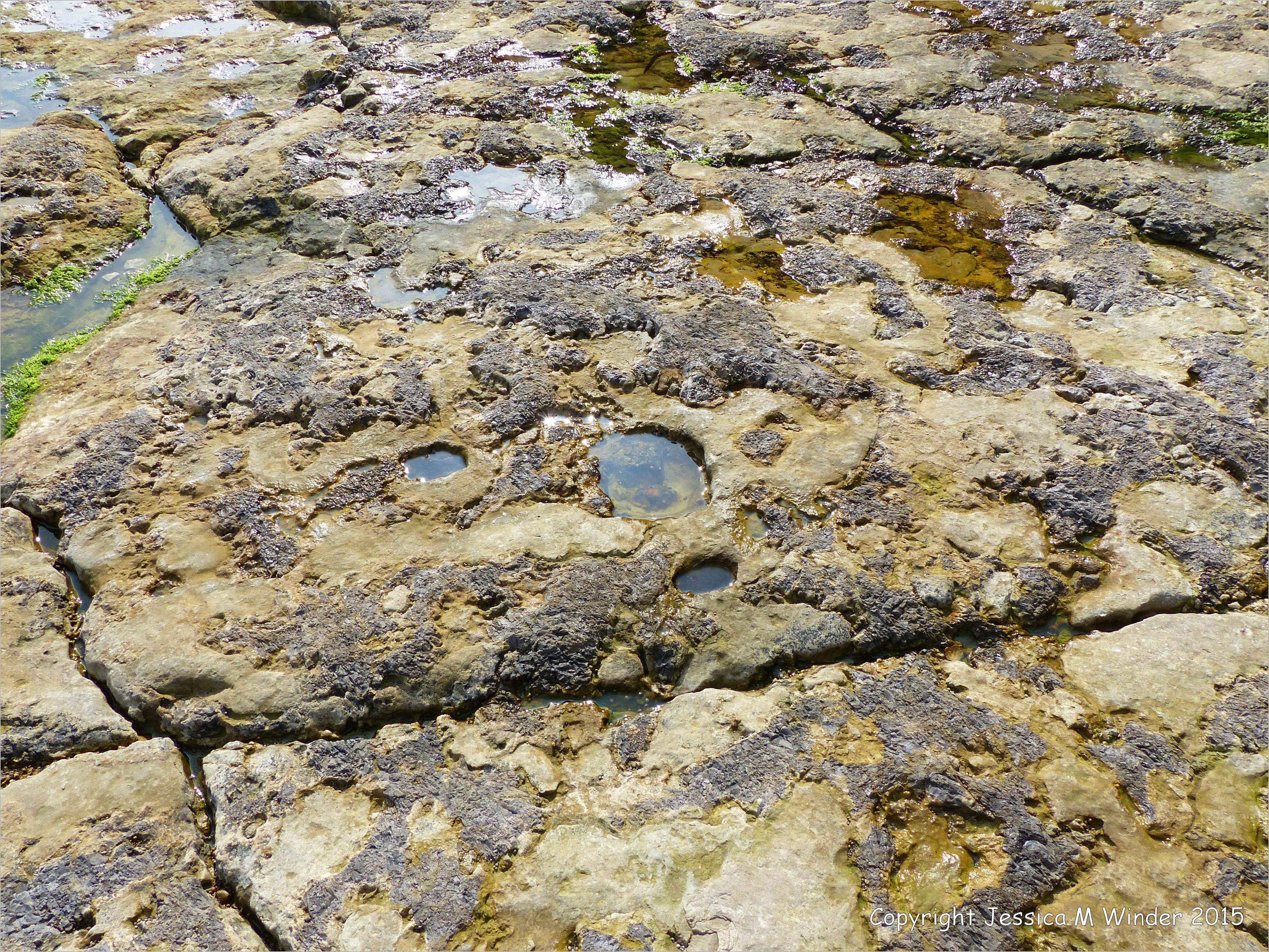 Winspit Shallow Pools 3 – Seashore life in shallow rock pools on a limestone ledge composed of Portland Chert Member Jurassic strata at Winspit in Dorset, England.