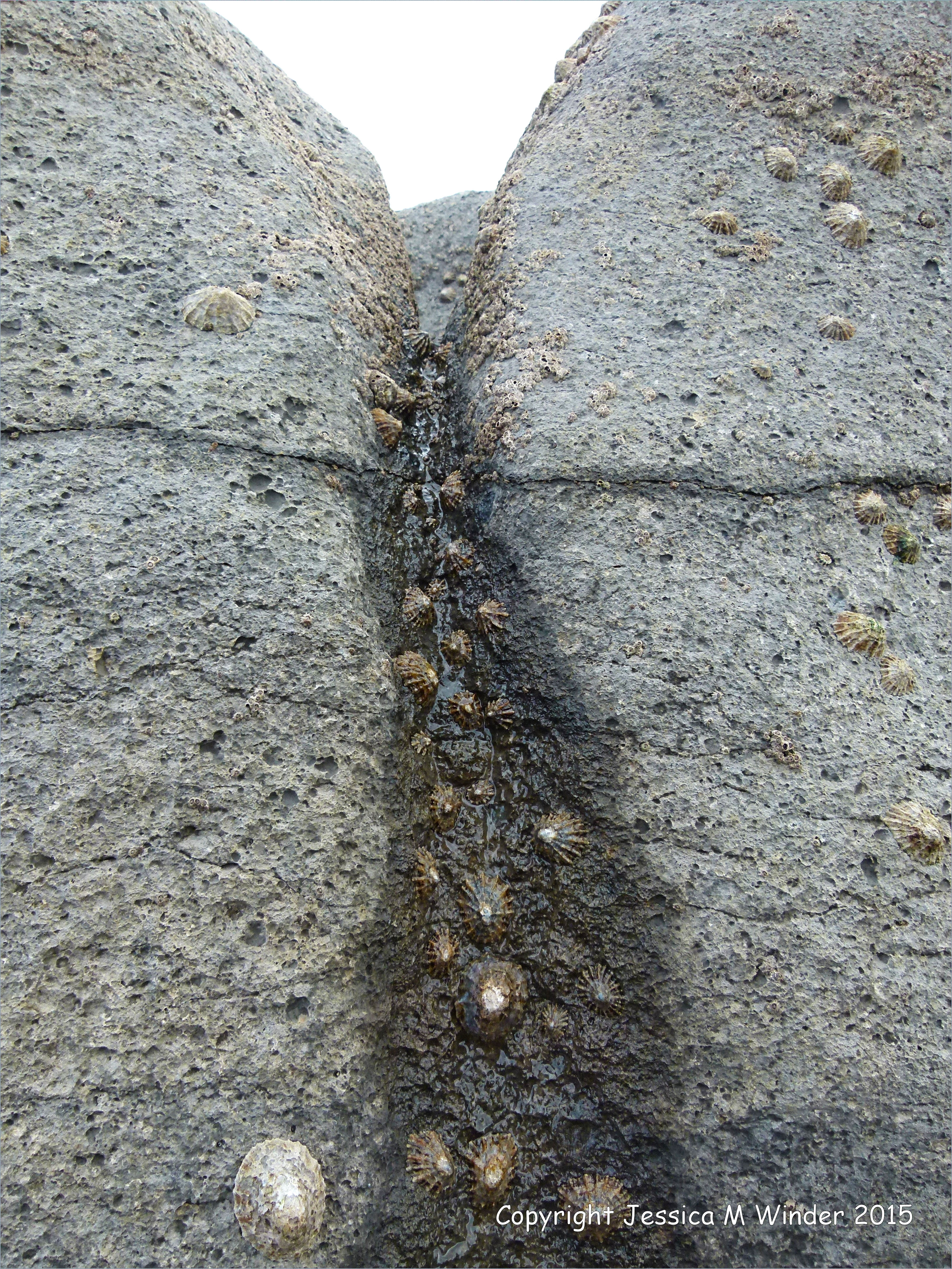 Doolin Rocks 15 – A congregation of limpets in a wet furrow of eroded limestone on the shore at Doolin, County Clare, Ireland.