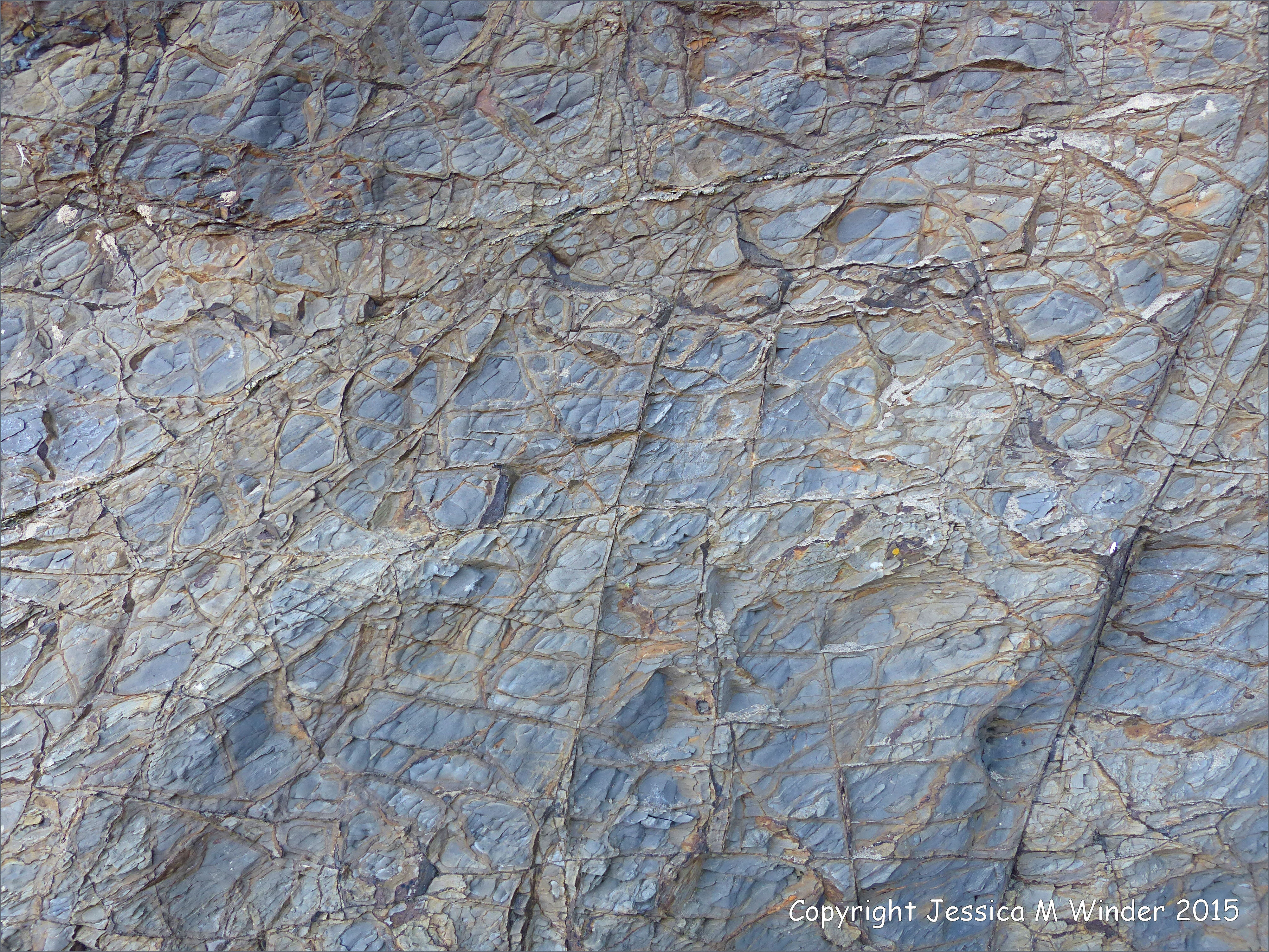 Saundersfoot Rocks 3 – Natural rock textures and patterns in Upper Carboniferous Period strata, Lower Coal Measures, on the shore near Coppet Hall, Saundersfoot, on the South Pembrokeshire Coast, Wales.