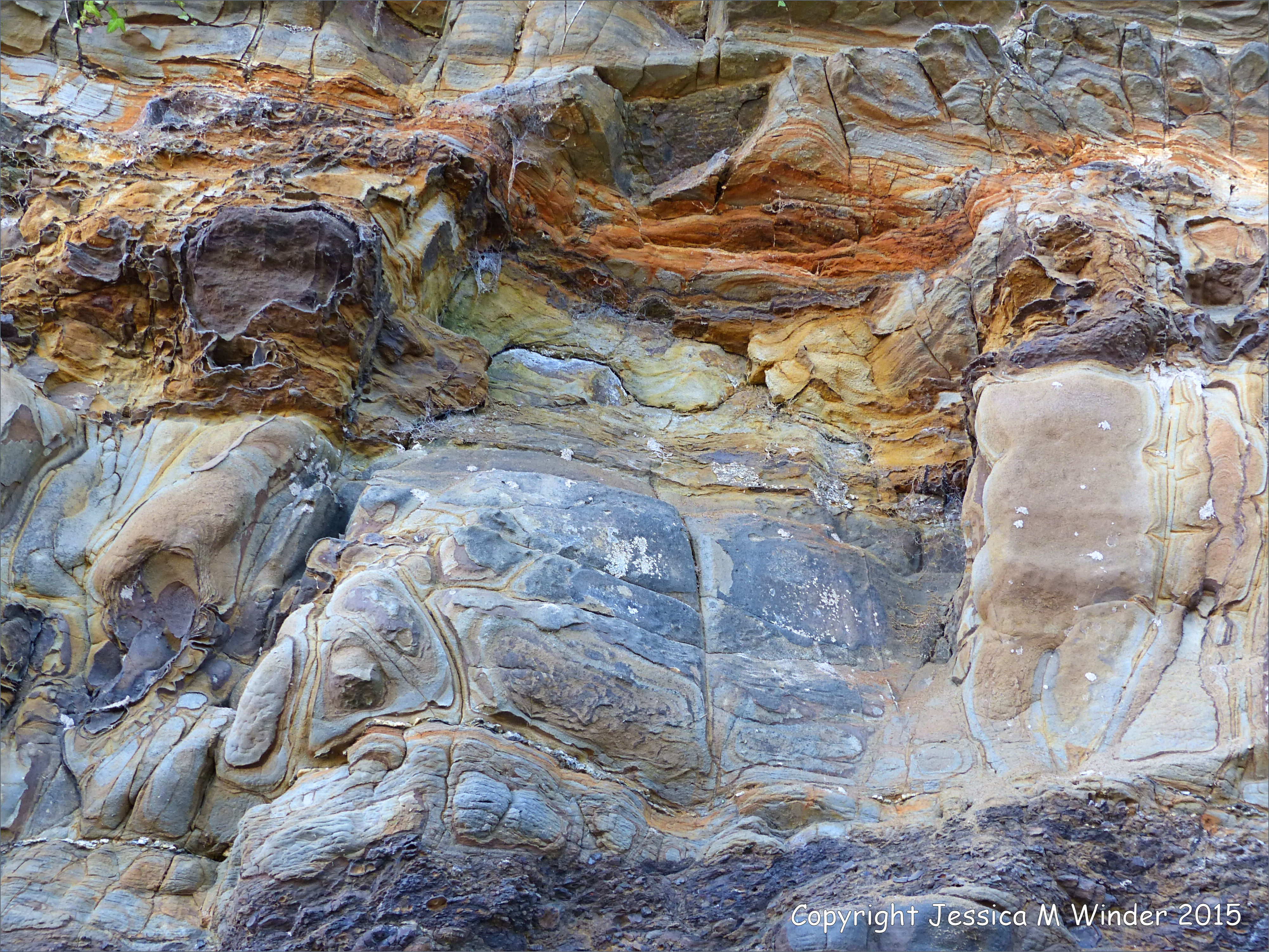 Saundersfoot Rocks 4 – Natural rock textures and patterns in Upper Carboniferous Period strata, Lower Coal Measures, on the shore near Coppet Hall, Saundersfoot, on the South Pembrokeshire Coast, Wales.