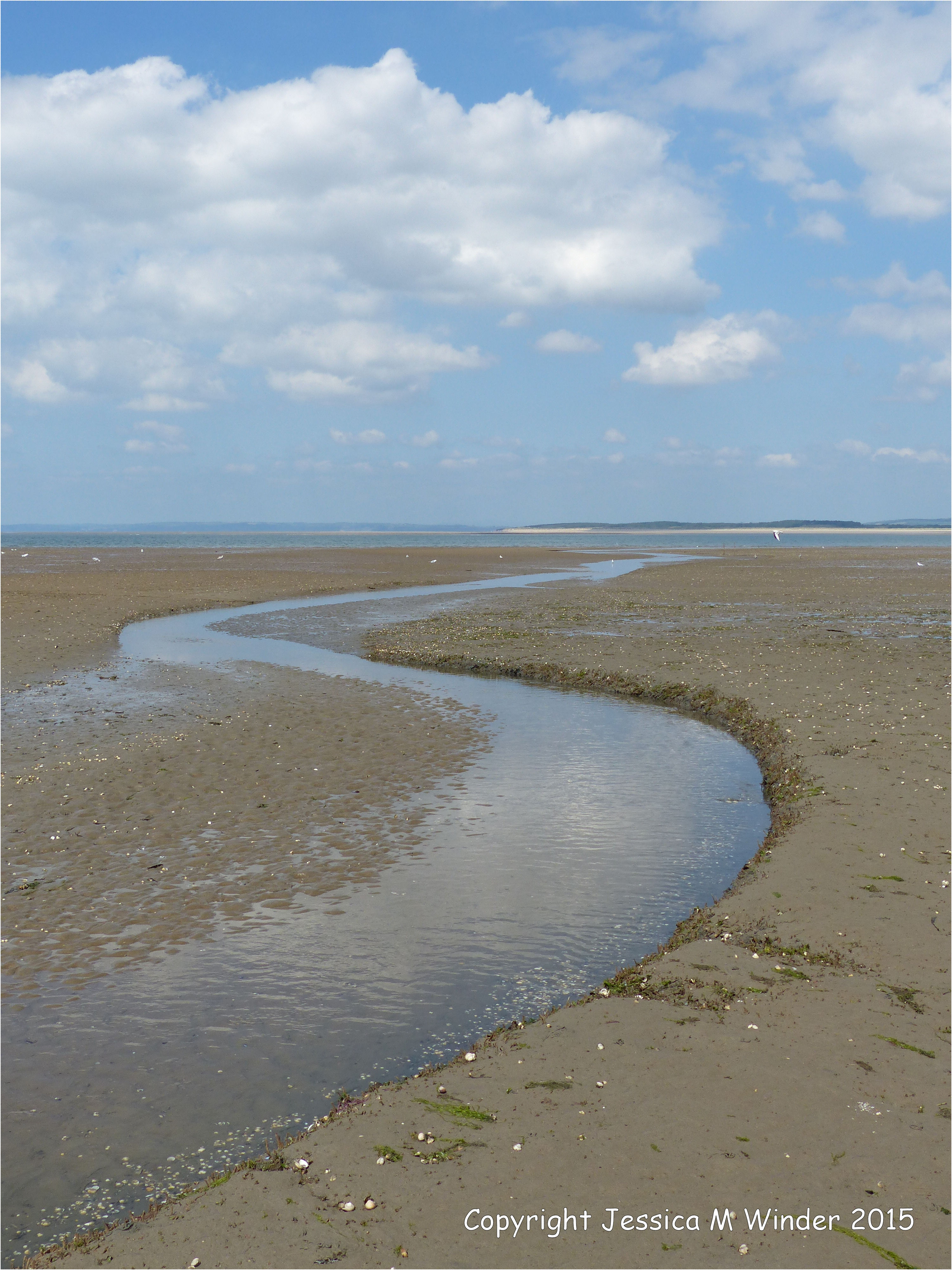 Traces on Whiteford Beach 1 – Beach stream carving its way seawards through thick layers of marine worm sandgrain tubes at Whiteford Sands, Gower, South Wales, August 2015.