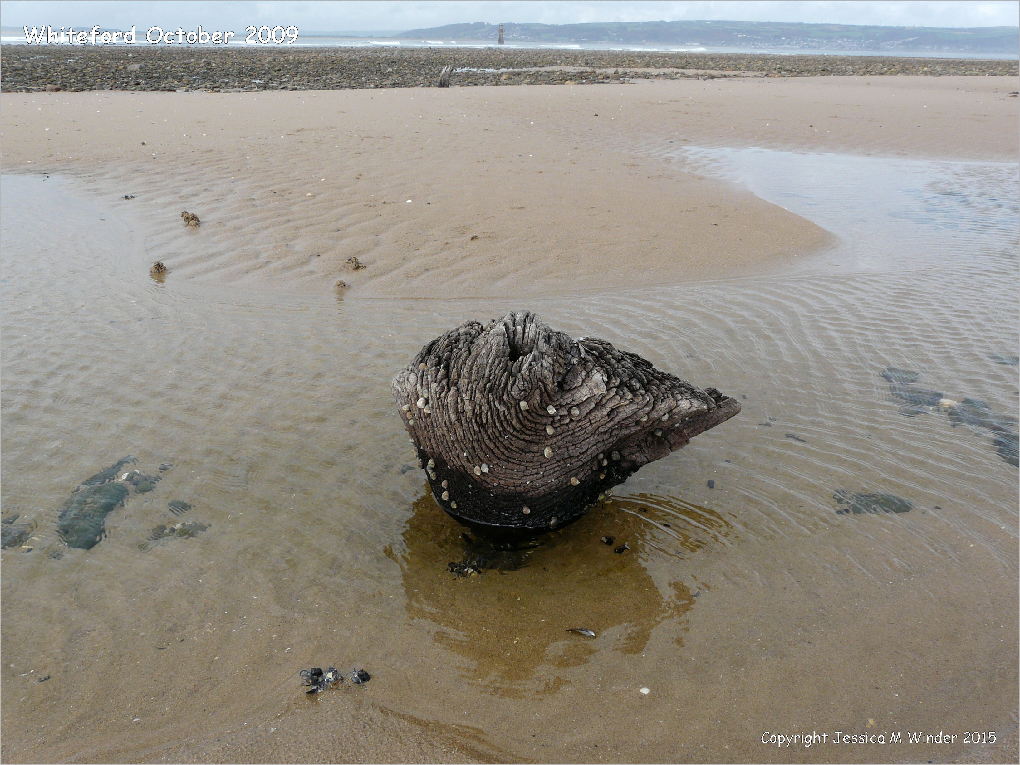 012 Whiteford 2009 October – View looking towards the lighthouse at Whiteford on the Gower Peninsula showing the area mostly covered by sand concealing underlying glacial rocks, peat and clay.