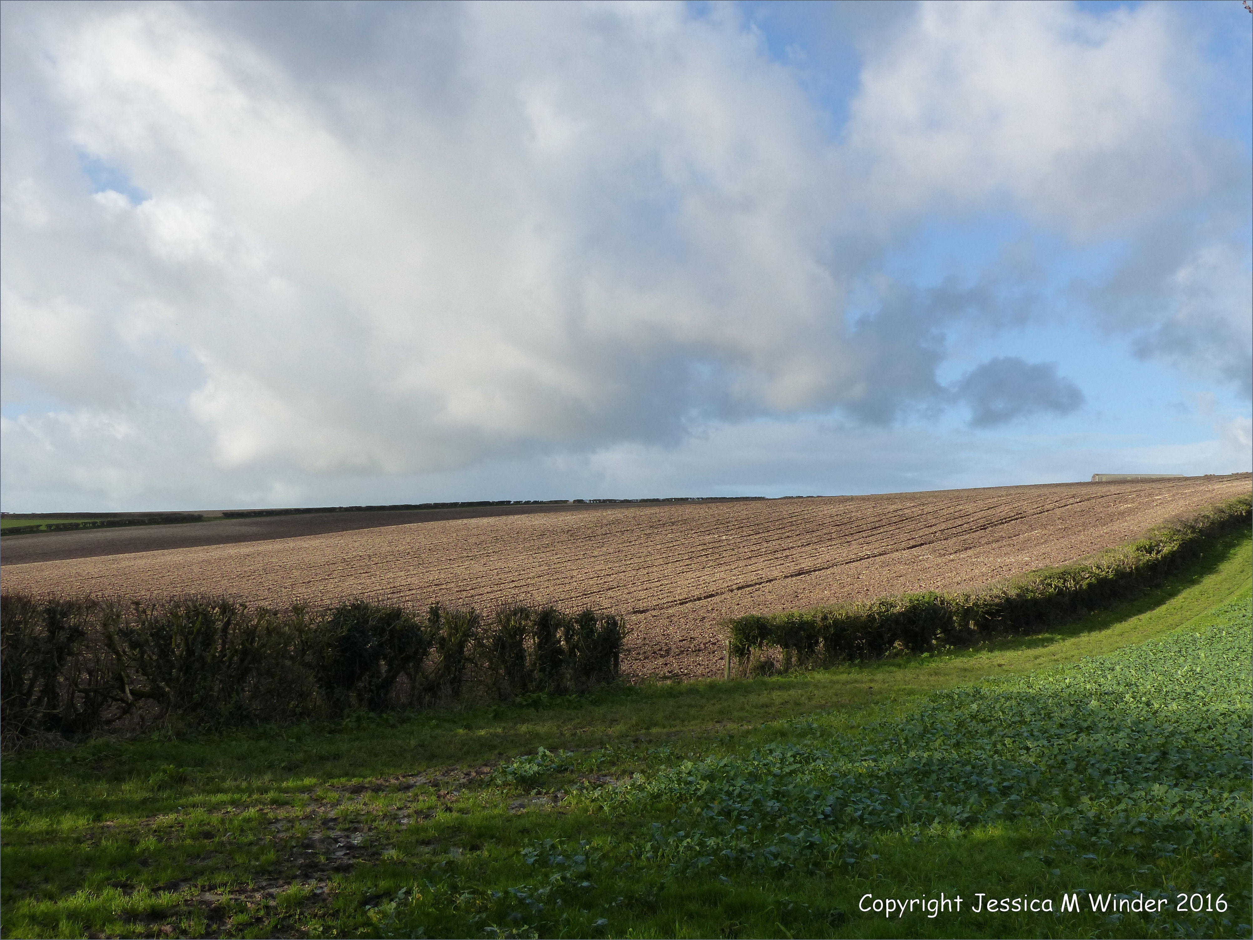 Rural View at Charlton Down 5 – Arable landscape with fields and hedges in the English countryside, January 2016.