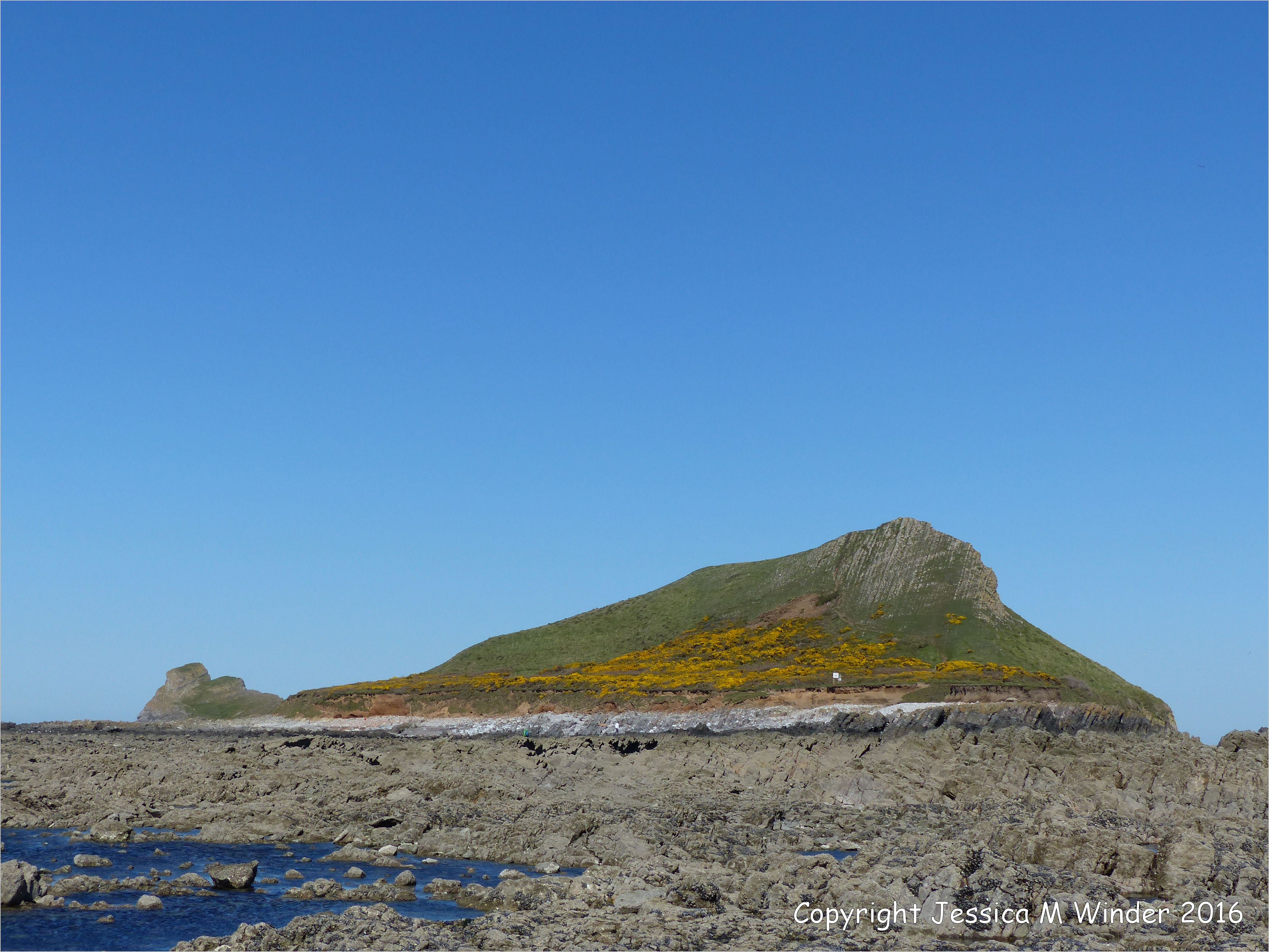 Worms Head West 5 – Closer view of the Inner Head of the Worm’s Head tidal island from the rocky shore on the west side.