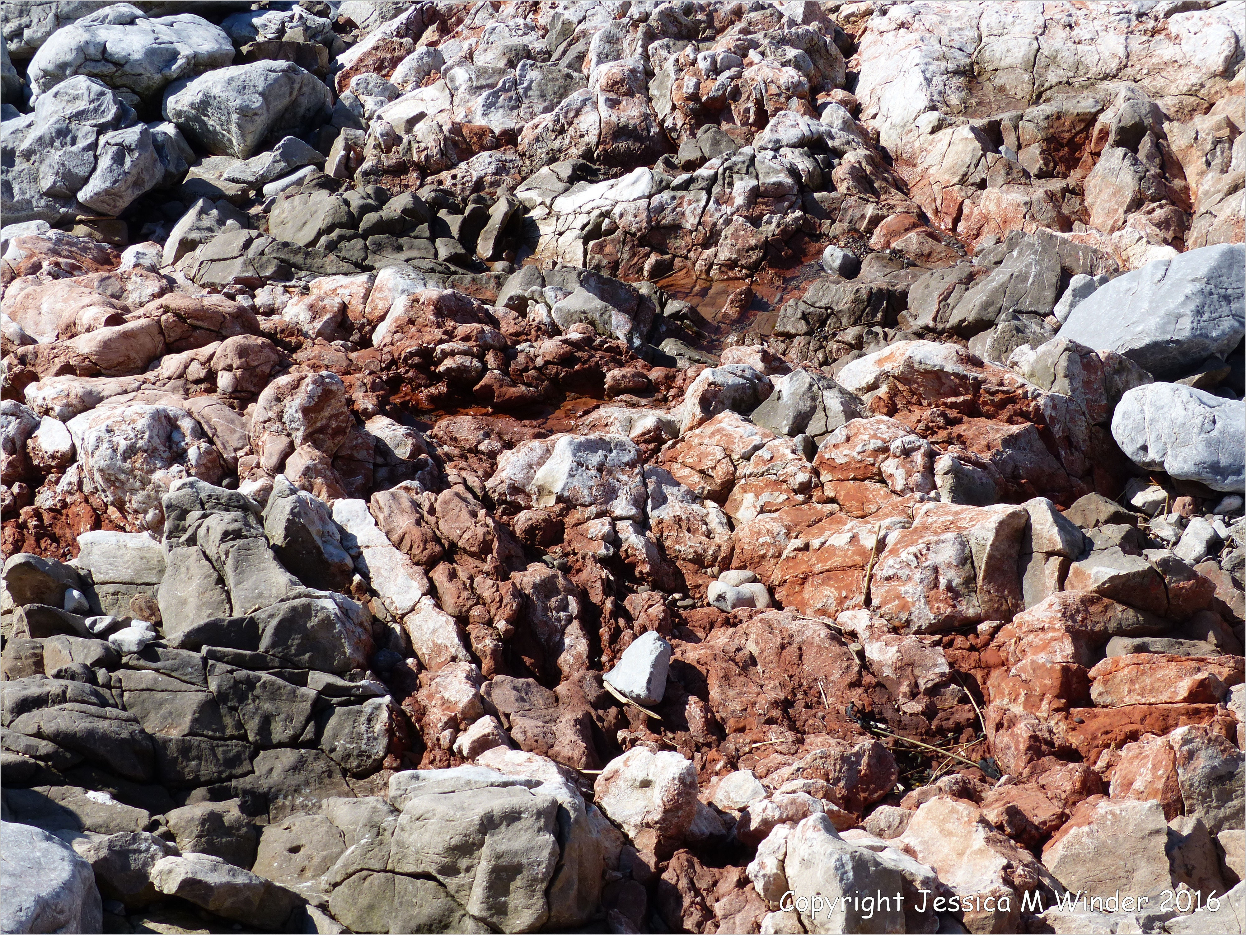 Worms Head West 16 – Western shore of Inner Head at Worm’s Head showing red haematite in the Carboniferous Limestone (Gully Oolite), Gower, South Wales.