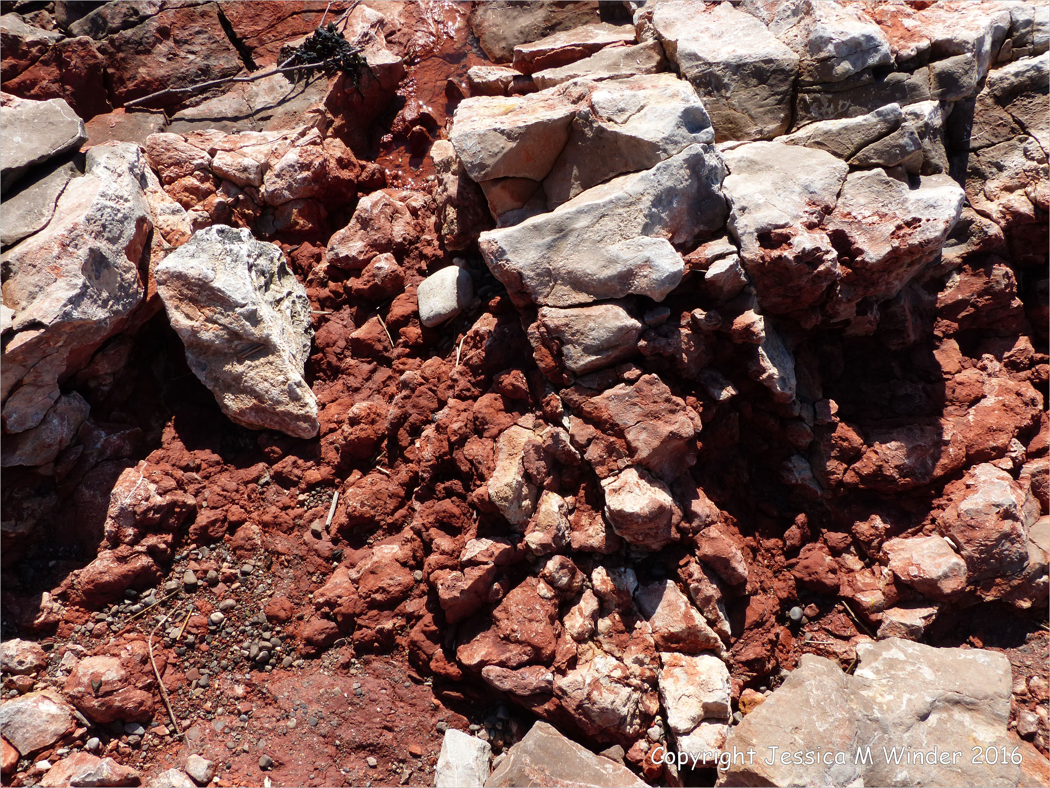 Worms Head West 17 – Western shore of Inner Head at Worm’s Head showing red haematite in the Carboniferous Limestone (Gully Oolite), Gower, South Wales.