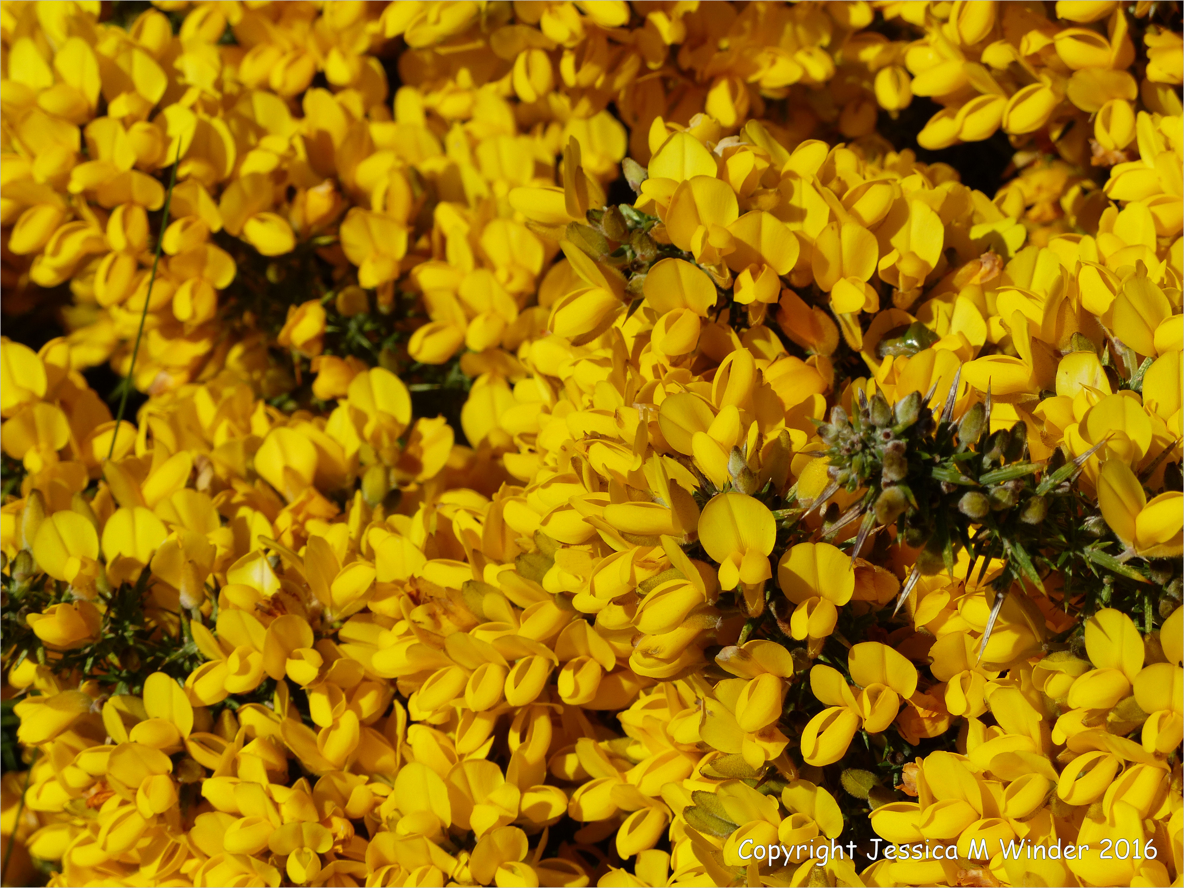 Worms Head West 48 – Bright yellow gorse flowers cloak the lower west slope of Inner Head, Worm’s Head, Gower, South Wales, in April.