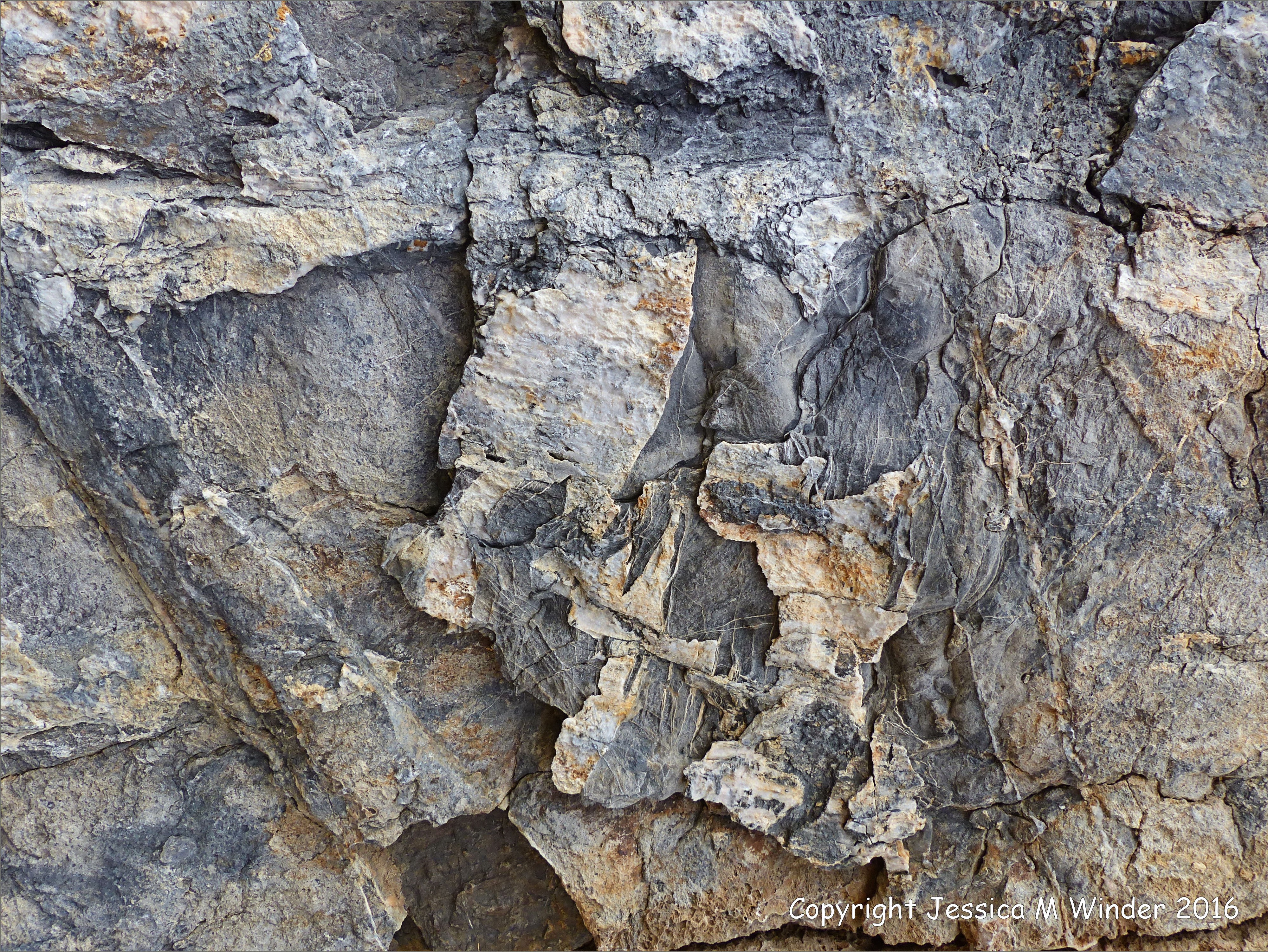 Three Cliffs Rocks WCN 4 – Texture in Carboniferous Pembroke Group Limestone, Black Rock Limestone Subgroup, in cliffs on the west side of Three Cliffs Bay, Gower, South Wales.