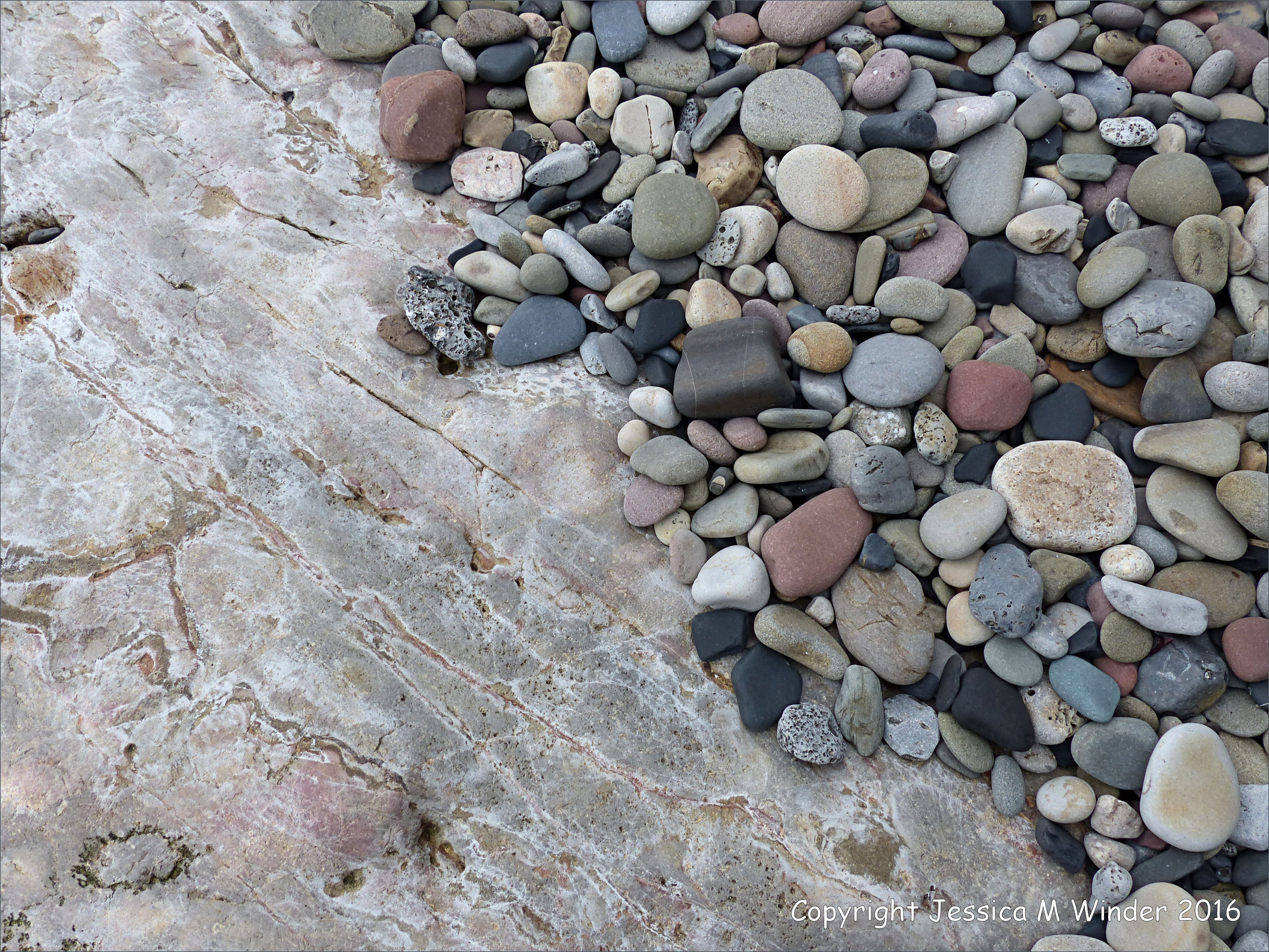 Pebbles at Langland Bay 13 – Pebbles from Carboniferous Period sedimentary rocks at Langland Bay, Gower, South Wales.