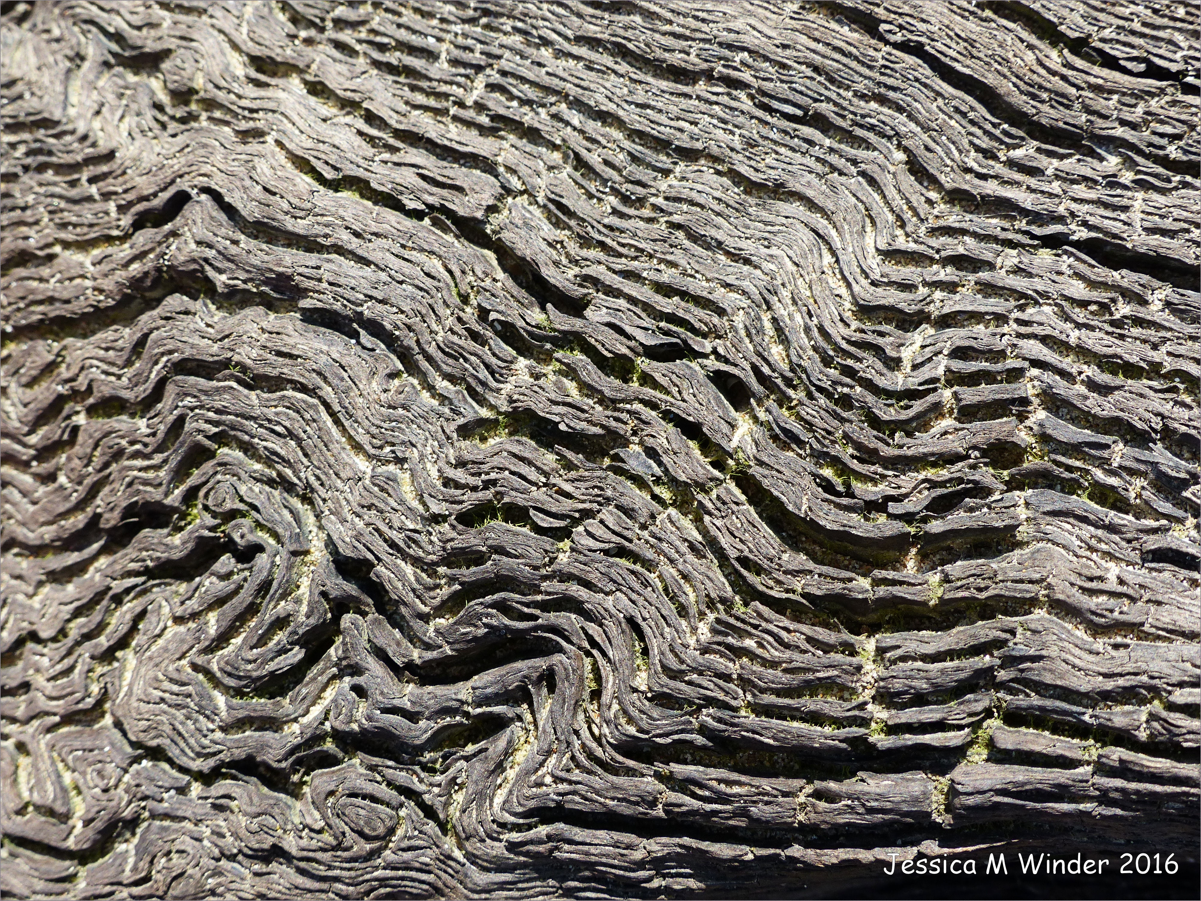 Ancient Wood In Peat 8 – Close-up detail of the intricate pattern and texture of the wood grain in an ancient tree trunk preserved by the anaerobic and acidic conditions in peat and clay layers that were deposited over the last 10,000 years as sea levels in Britain fluctuated and gradually rose to present levels following the last period of glaciation, submerging an extensive woodland.