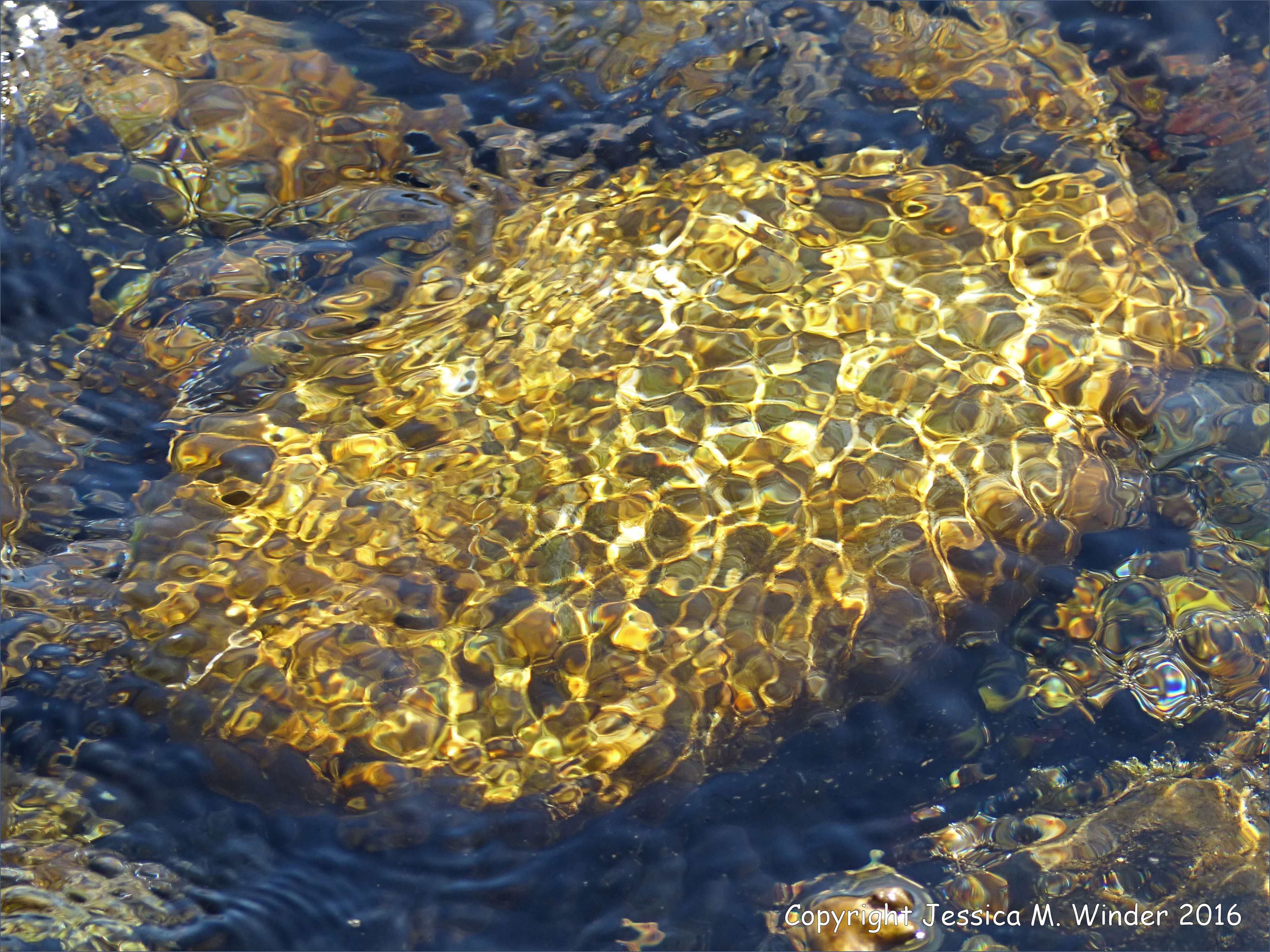 Pebble In a Stream 6 Pebble In a Stream 6 – Pebble on a stream bed shimmering gold with reflected light,